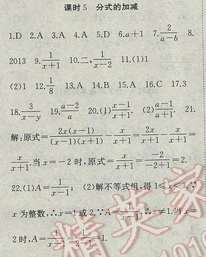 2017年高效精煉八年級(jí)下冊(cè)數(shù)學(xué)【江蘇版】第10章 課時(shí)5 分式的加減