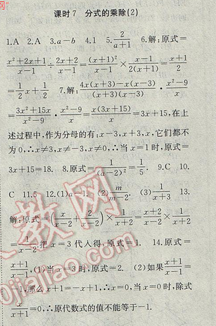 2017年高效精煉八年級下冊數(shù)學(xué)【江蘇版】第10章 課時7 分式的乘除(2)