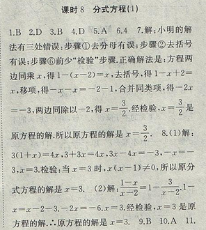 2017年高效精煉八年級下冊數(shù)學【江蘇版】第10章 課時8 分式方程(1)