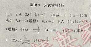 2017年高效精煉八年級下冊數(shù)學(xué)【江蘇版】第10章 課時9 分式方程(2)