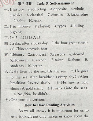 2017年高效精煉八年級(jí)下冊(cè)英語(yǔ)【譯林牛津版】Unit 4 A good read 第7課時(shí)