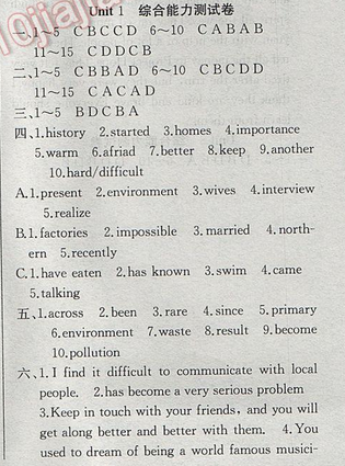 2017年高效精煉八年級(jí)下冊(cè)英語【譯林牛津版】Unit 1 綜合能力測(cè)試卷
