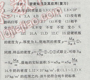2017年高效精煉八年級(jí)下冊(cè)物理【蘇科版】第六章 課時(shí)6 密度知識(shí)及其應(yīng)用(復(fù)習(xí))
