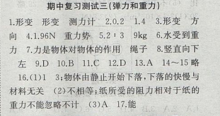 2017年高效精煉八年級下冊物理【蘇科版】期中復(fù)習(xí)測試三(彈力和重力)