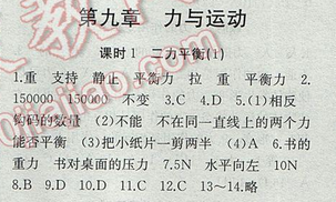 2017年高效精煉八年級(jí)下冊(cè)物理【蘇科版】第九章 課時(shí)1 二力平衡(1)