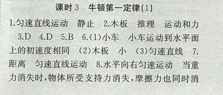 2017年高效精煉八年級(jí)下冊物理【蘇科版】第九章 課時(shí)3 牛頓第一定律(1)