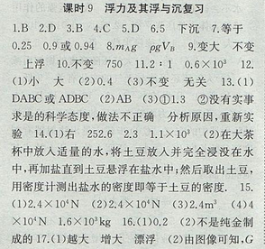 2017年高效精煉八年級(jí)下冊(cè)物理【蘇科版】第十章 課時(shí)9 浮力及其浮與沉復(fù)習(xí)