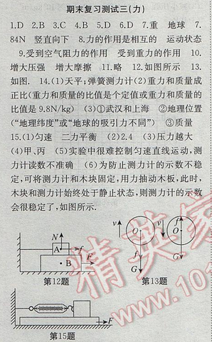 2017年高效精煉八年級(jí)下冊(cè)物理【蘇科版】期末復(fù)習(xí)測(cè)試三(力)