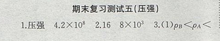 2017年高效精煉八年級下冊物理【蘇科版】期末復習測試五(壓強)