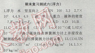 2017年高效精煉八年級下冊物理【蘇科版】期末復(fù)習(xí)測試六(浮力)