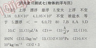 2017年高效精煉八年級下冊物理【蘇科版】期末復(fù)習(xí)測試七(物體的浮與沉)