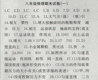2017年高效精煉八年級下冊物理【蘇科版】八年級物理期末試卷(一)