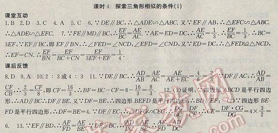 2017年高效精煉九年級下冊數(shù)學(xué)【蘇科版】第6章 課時4 探索三角形相似的條件(1)
