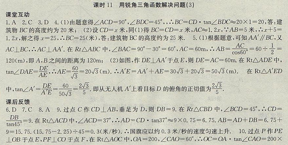 2017年高效精煉九年級(jí)下冊(cè)數(shù)學(xué)【蘇科版】第7章 課時(shí)11 用銳角三角函數(shù)解決問(wèn)題(3)