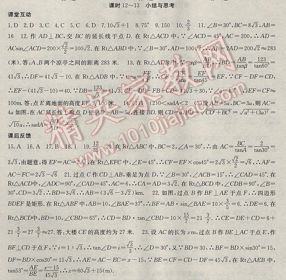 2017年高效精煉九年級下冊數(shù)學【蘇科版】第7章 課時12~13 小結(jié)與思考