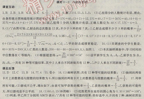 2017年高效精煉九年級(jí)下冊(cè)數(shù)學(xué)【蘇科版】第8章 課時(shí)8~9 小結(jié)與思考