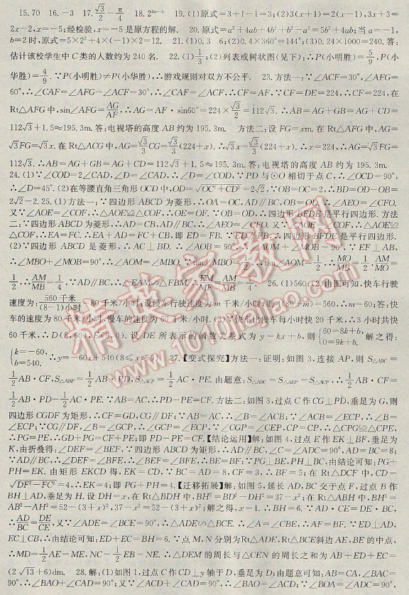 2017年高效精煉九年級下冊數(shù)學(xué)【蘇科版】綜合練習(xí)(二)