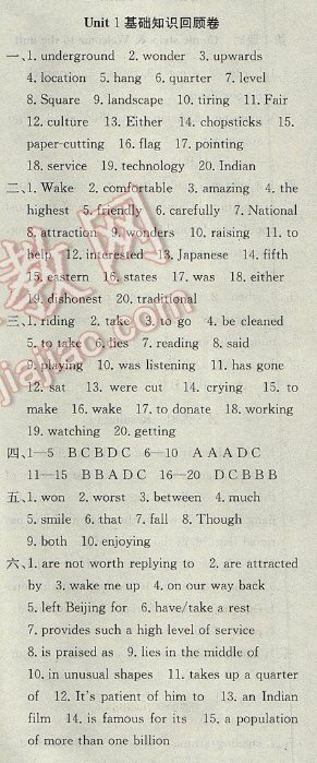 2017年高效精煉九年級下冊英語【譯林牛津版】Unit 1基礎知識回顧卷