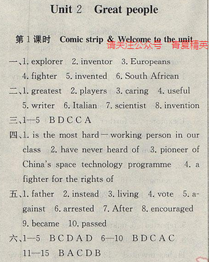 2017年高效精煉九年級(jí)下冊(cè)英語(yǔ)【譯林牛津版】Unit 2 Great people 第1課時(shí)