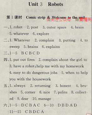 2017年高效精煉九年級下冊英語【譯林牛津版】Unit 3 Robots 第1課時