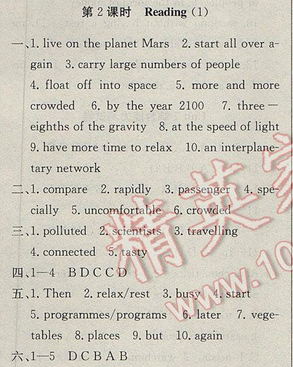 2017年高效精煉九年級(jí)下冊(cè)英語【譯林牛津版】Unit 4 Life on Mars 第2課時(shí)