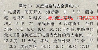 2017年高效精煉九年級下冊物理【蘇科版】第十五章 課時(shí)13 家庭電路與安全用電(1)