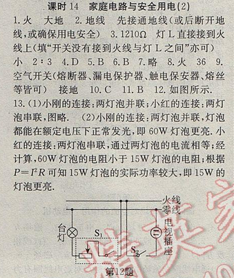 2017年高效精煉九年級下冊物理【蘇科版】第十五章 課時14 家庭電路與安全用電(2)