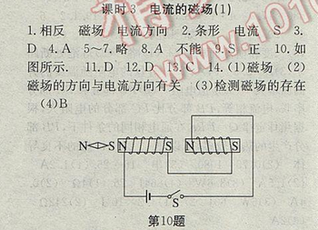 2017年高效精煉九年級下冊物理【蘇科版】第十六章 課時3 電流的磁場(1)