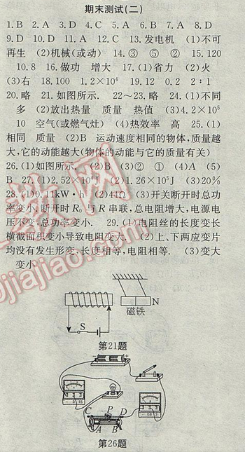 2017年高效精煉九年級(jí)下冊(cè)物理【蘇科版】期末測(cè)試(二)