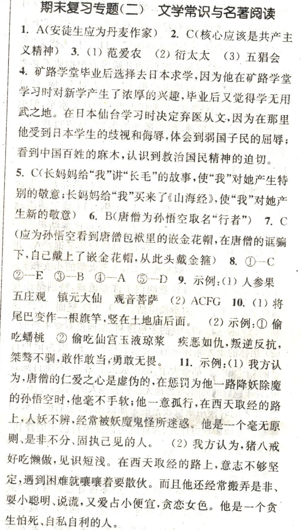 期末復(fù)習(xí)專題(二)文學(xué)常識(shí)與名著閱讀