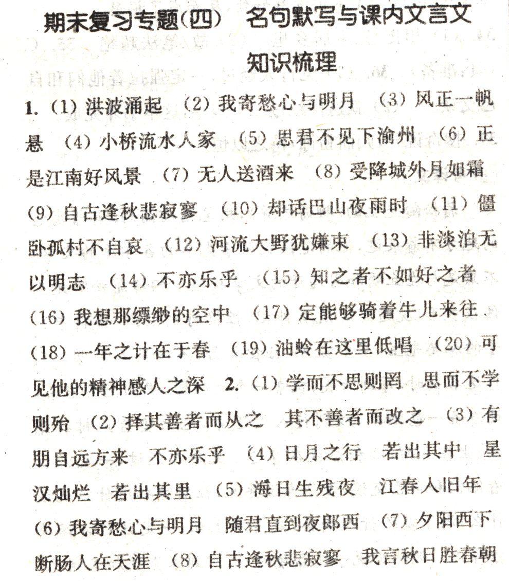 期末復習專題(四)名句默寫與課內文言文知識梳理