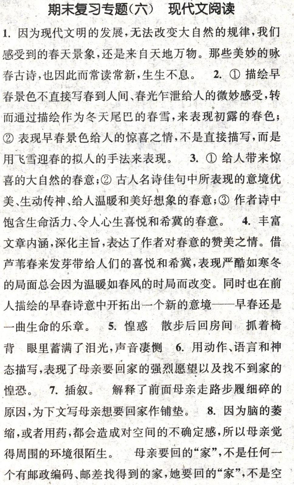 期末復(fù)習(xí)專題(六)現(xiàn)代文閱讀