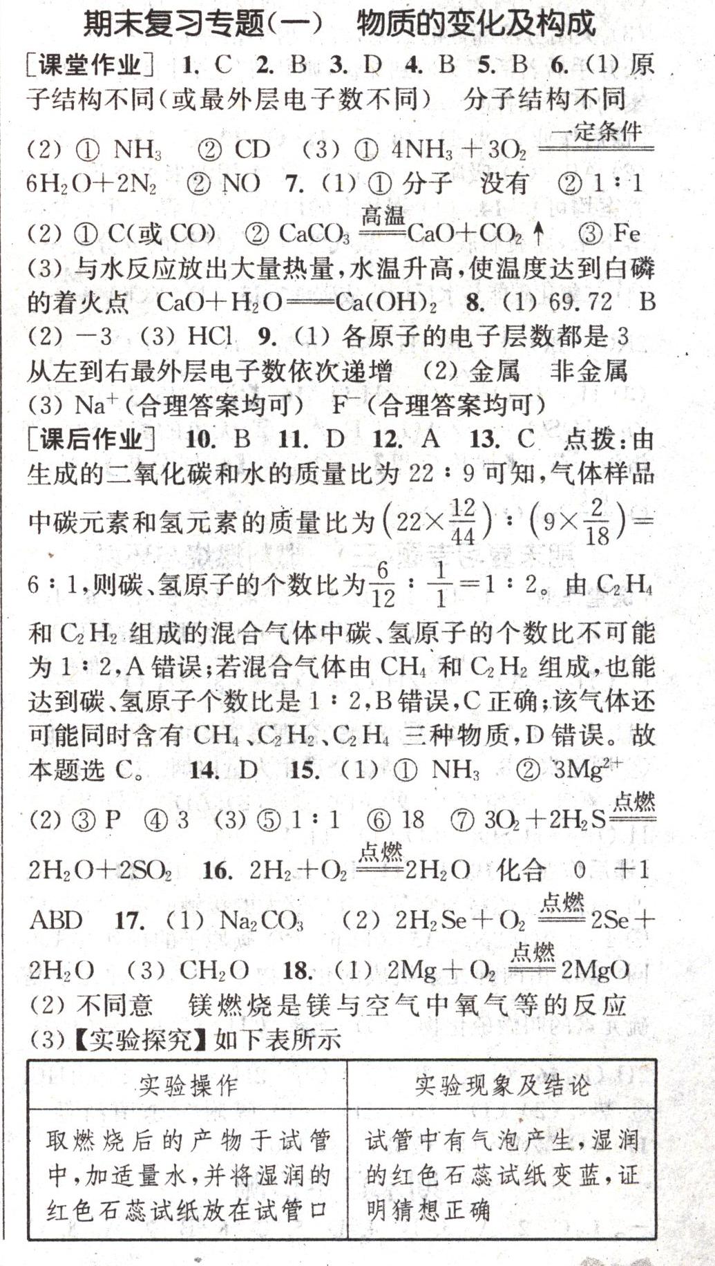 期末復(fù)習(xí)專題一 物質(zhì)的變化及構(gòu)成