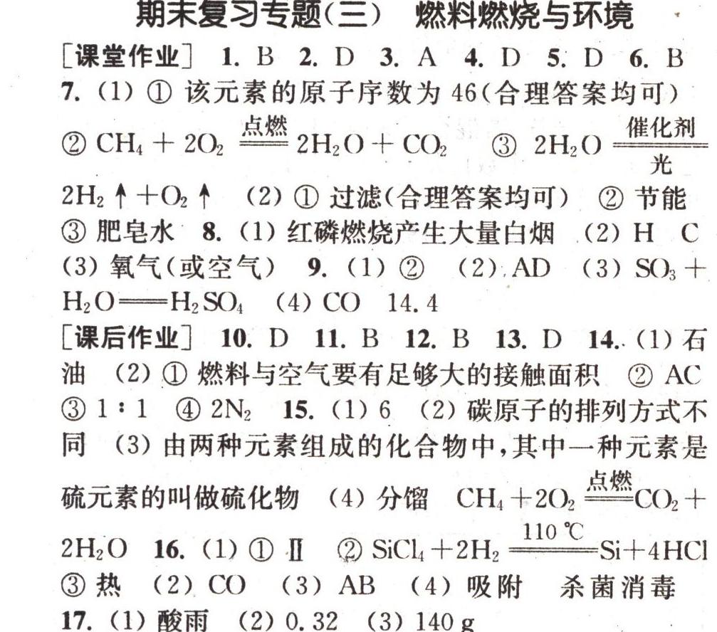 期末復(fù)習(xí)專題三 燃料燃燒與環(huán)境