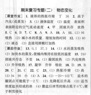 期末復(fù)習(xí)專題二 物態(tài)變化