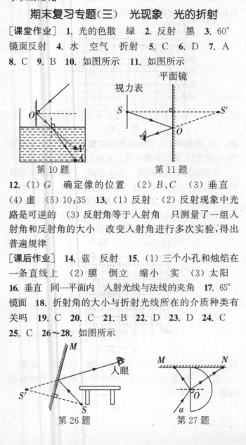 期末復(fù)習(xí)專(zhuān)題三 光現(xiàn)象 光的折射