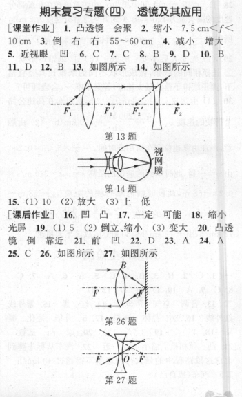 期末復(fù)習(xí)專題四 透鏡及其應(yīng)用