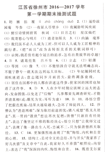 江蘇省徐州市2016-2017學(xué)年第一學(xué)期期末抽測試題