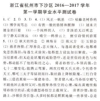 浙江省杭州市下沙區(qū)2016-2017學(xué)年第一學(xué)期學(xué)業(yè)水平測(cè)試卷