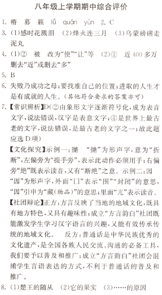 八年級(jí)上學(xué)期期中綜合評(píng)價(jià)