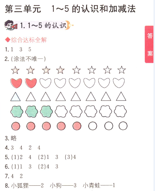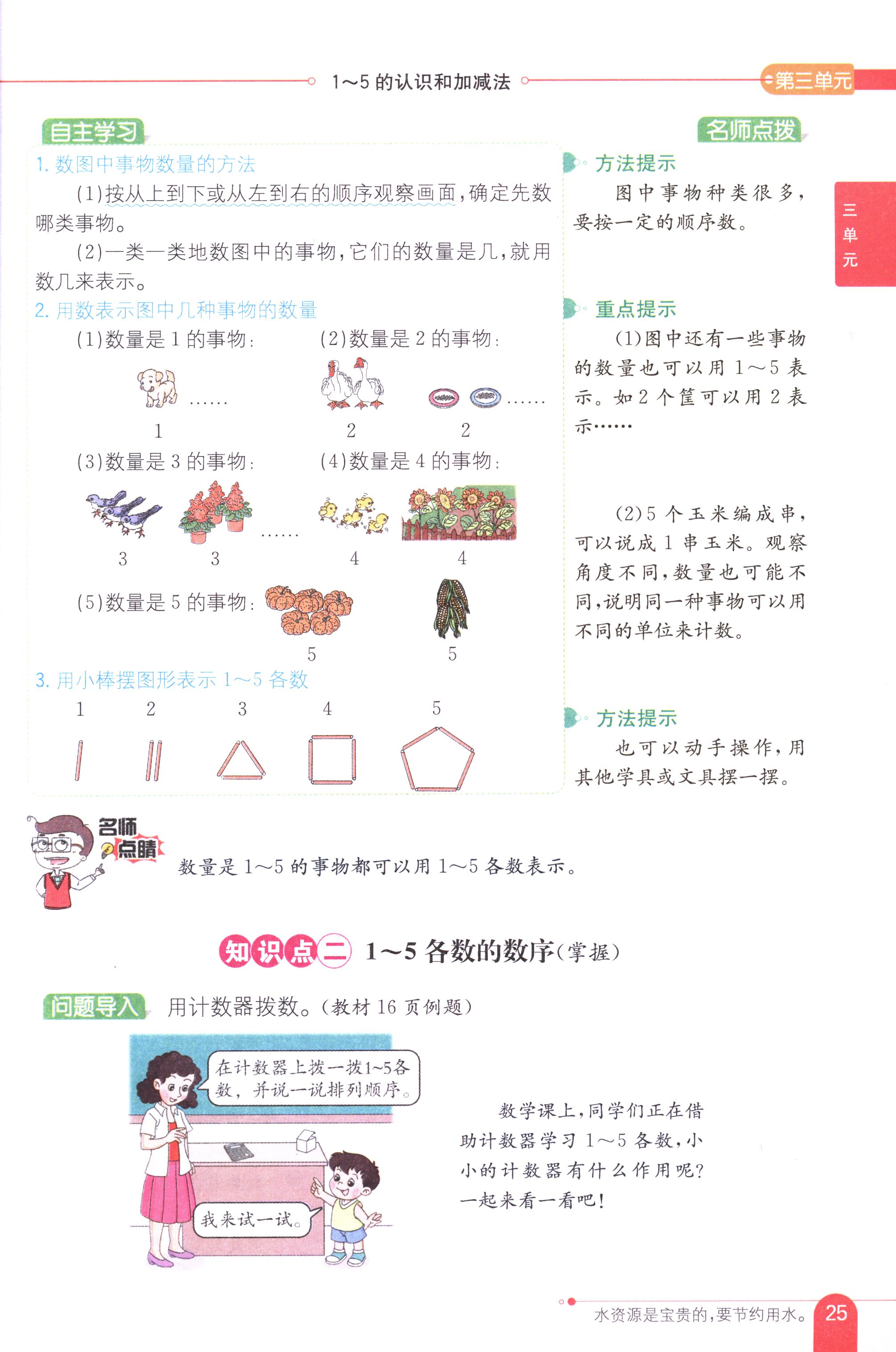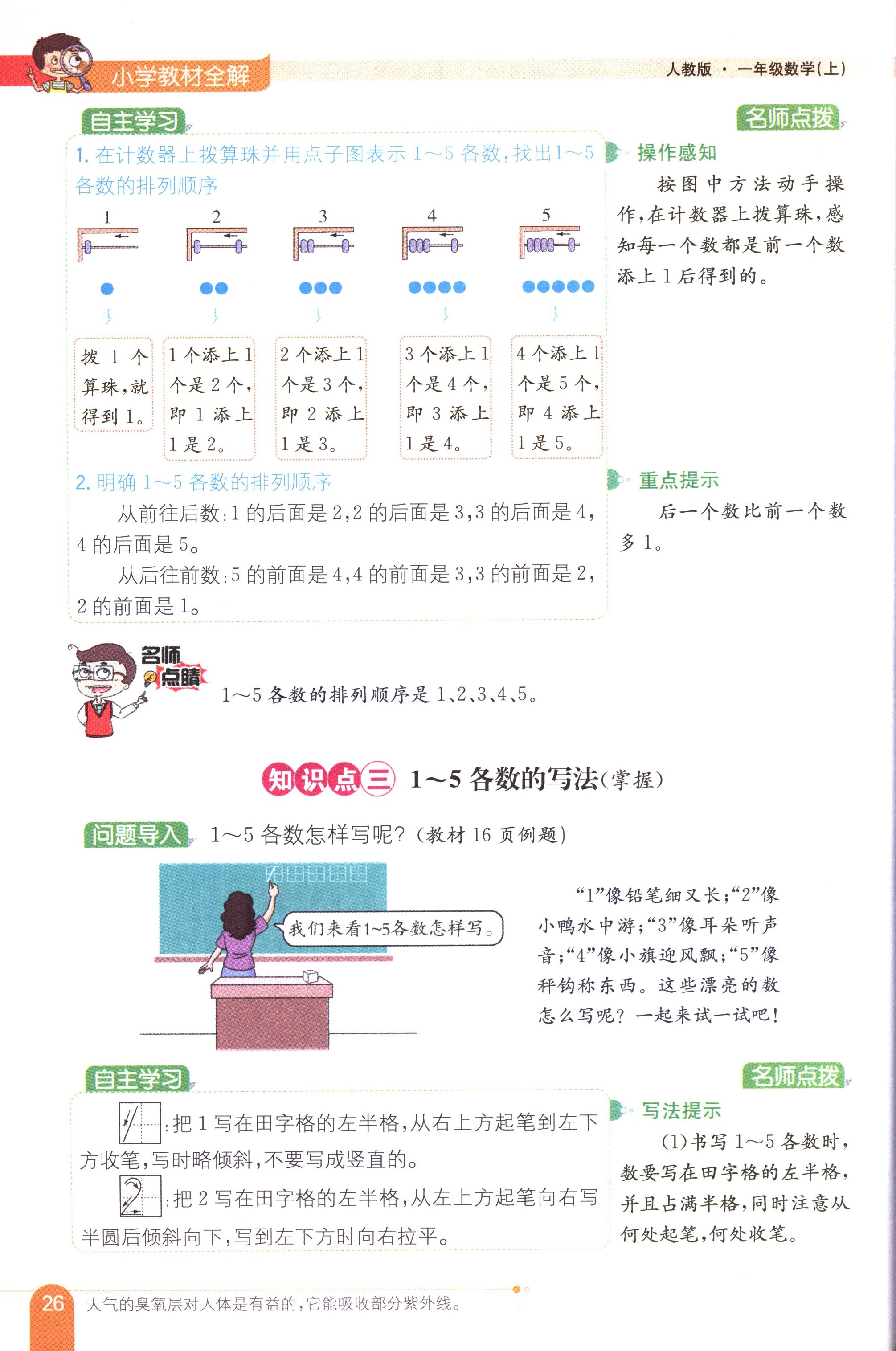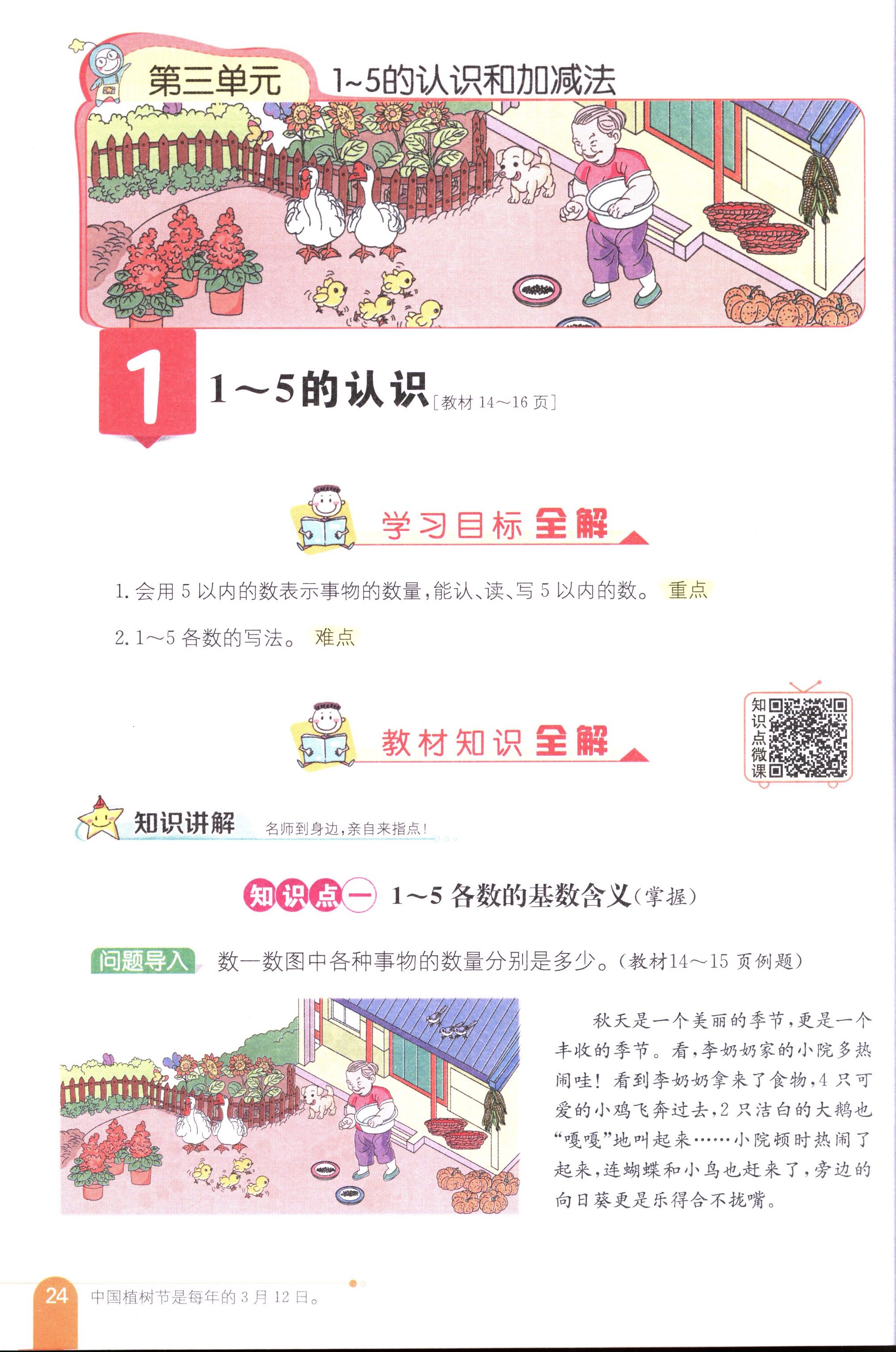 數(shù)學(xué)課本人教版一年級(jí)上 3.1 1~5的認(rèn)識(shí)