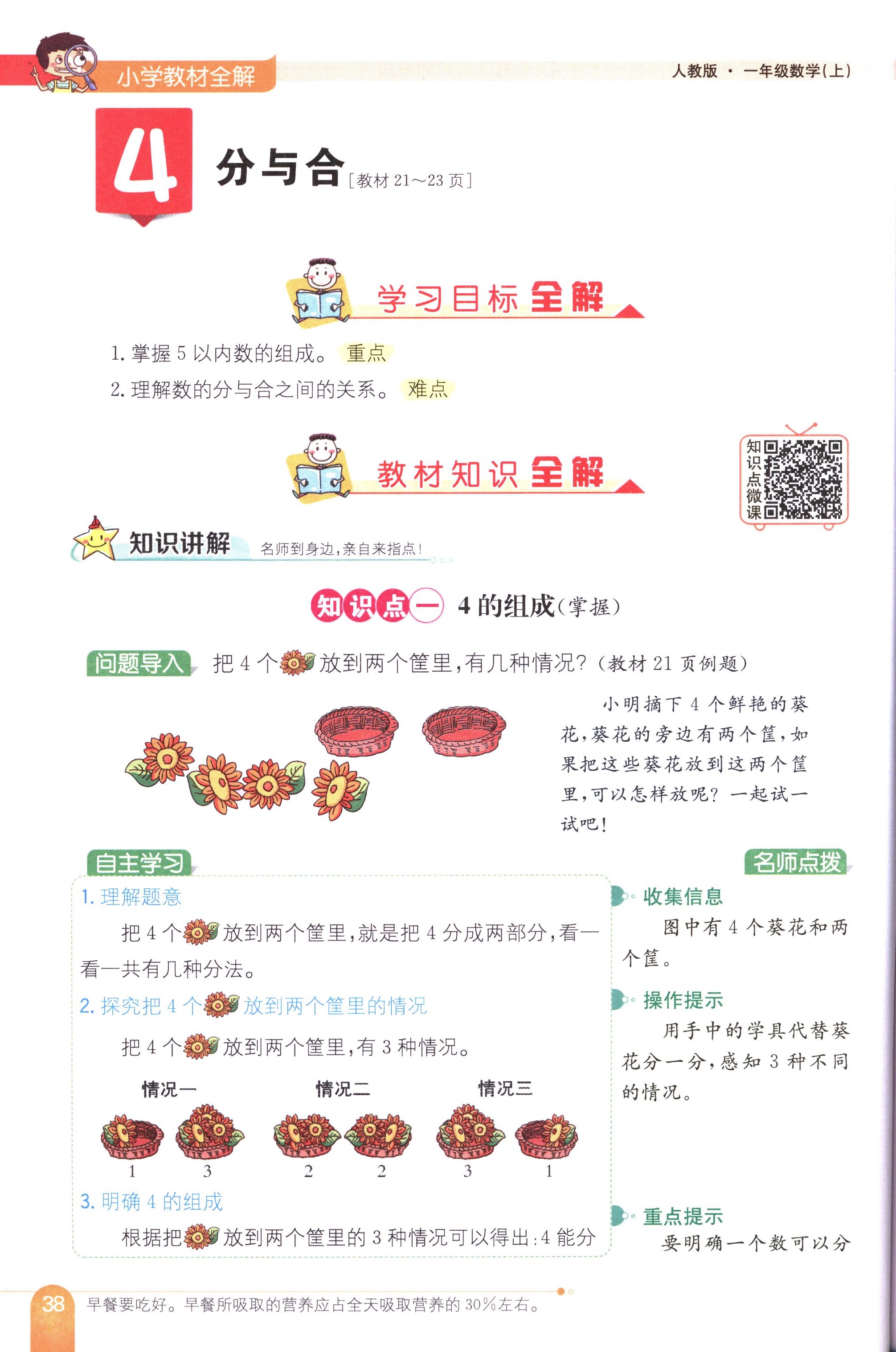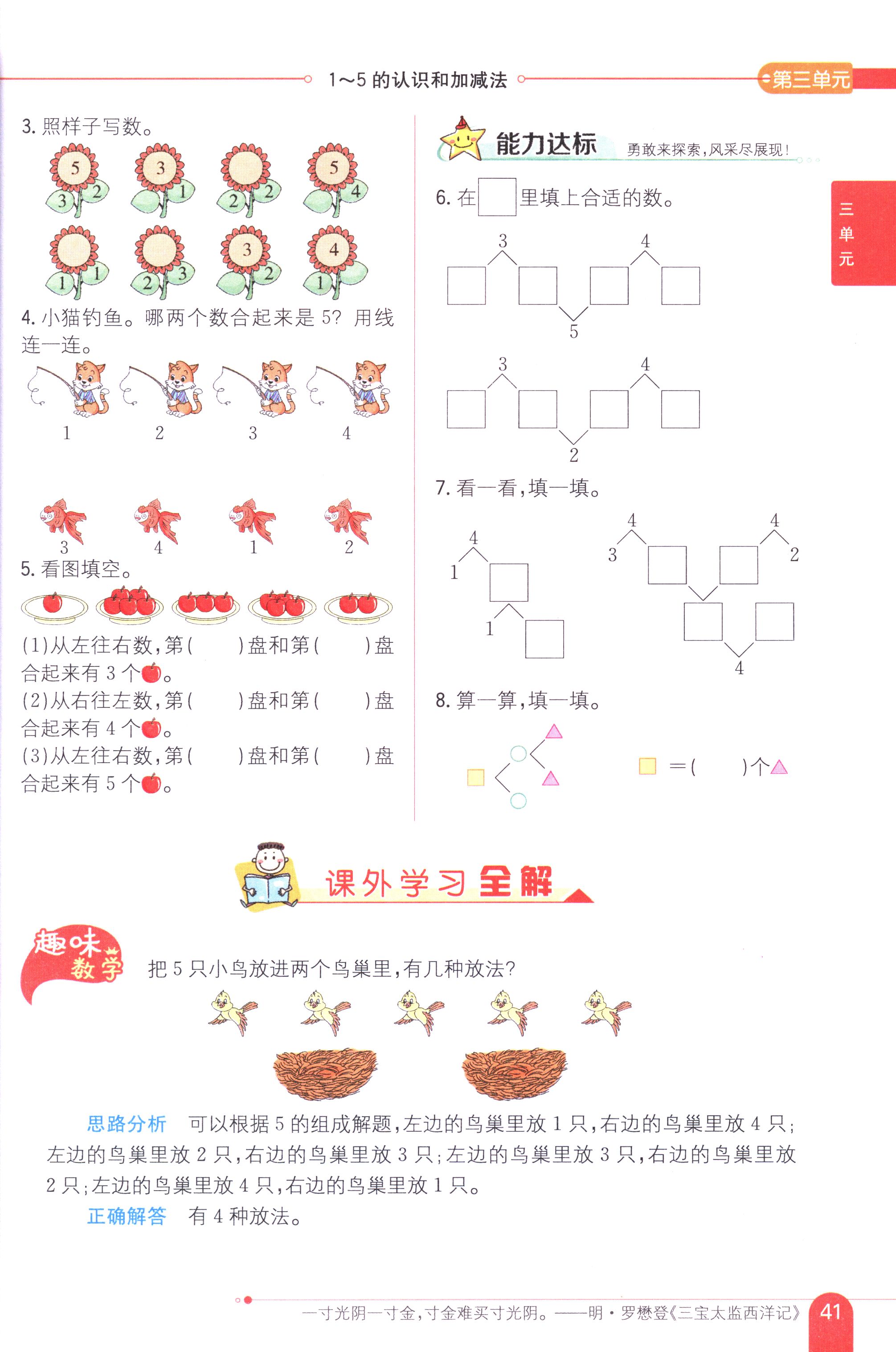 數(shù)學(xué)課本人教版一年級上 3.4 分與合