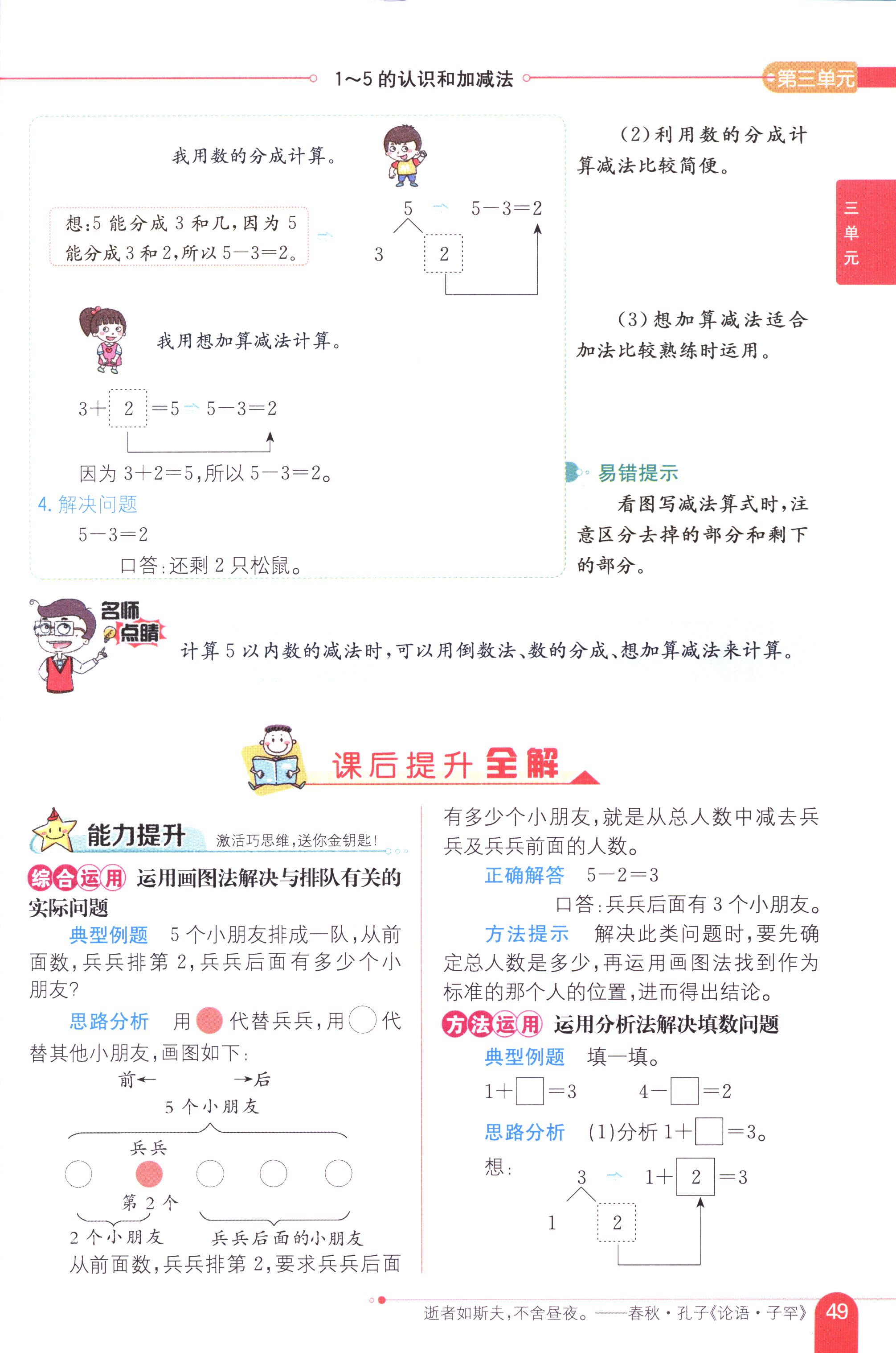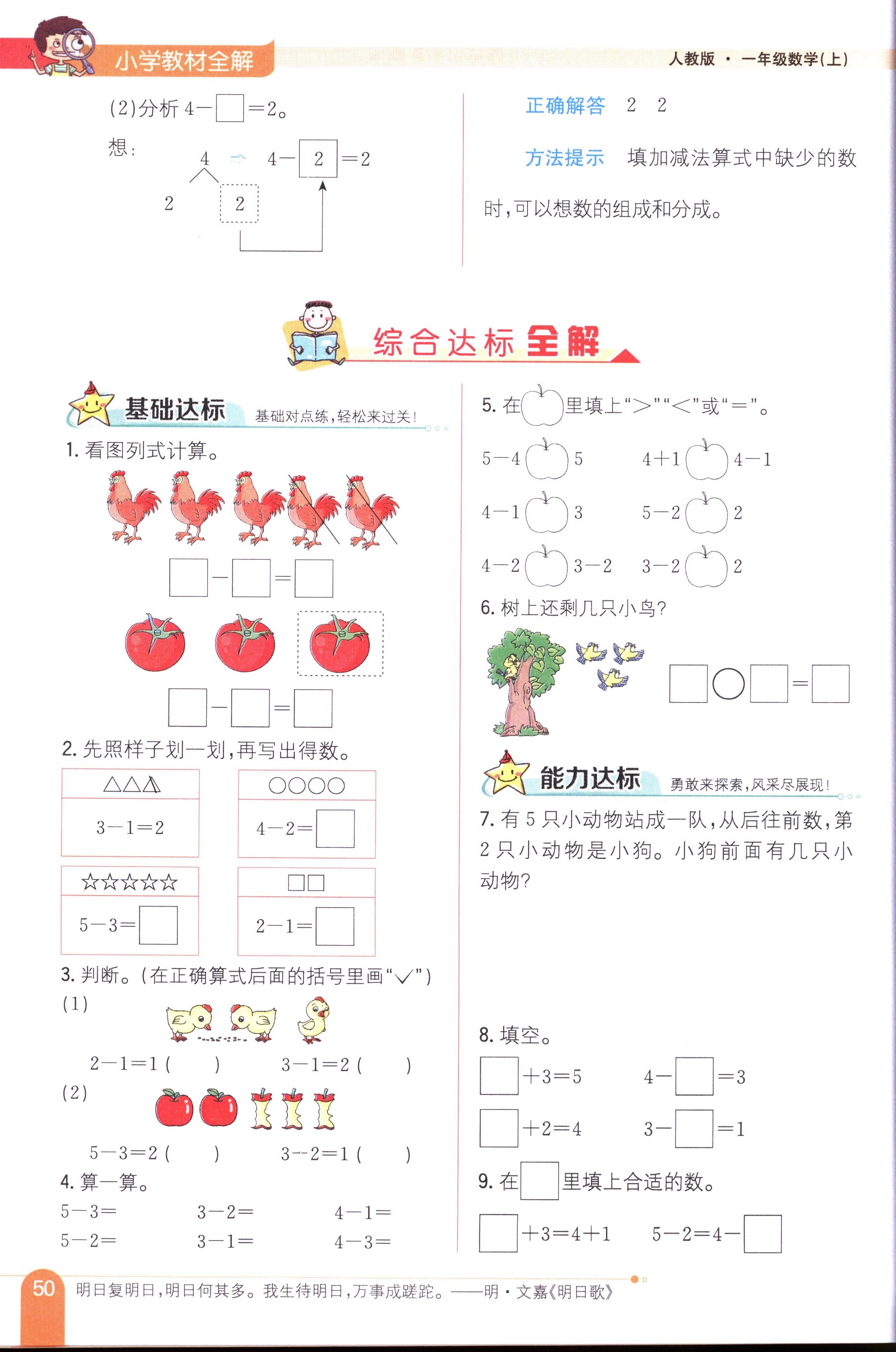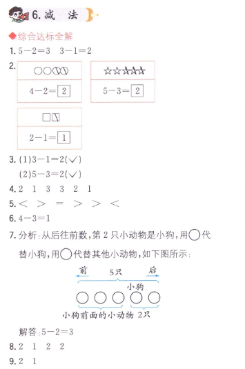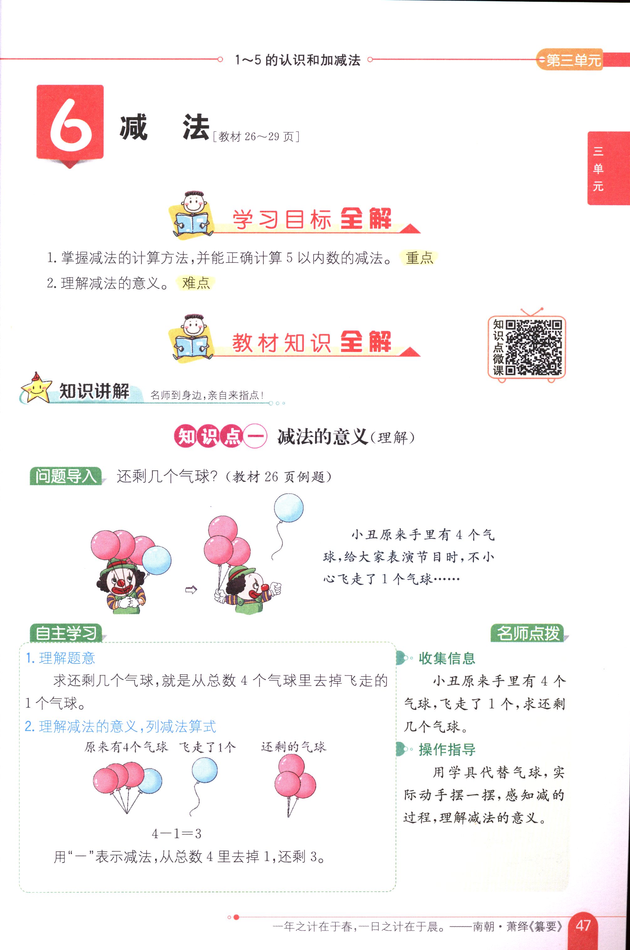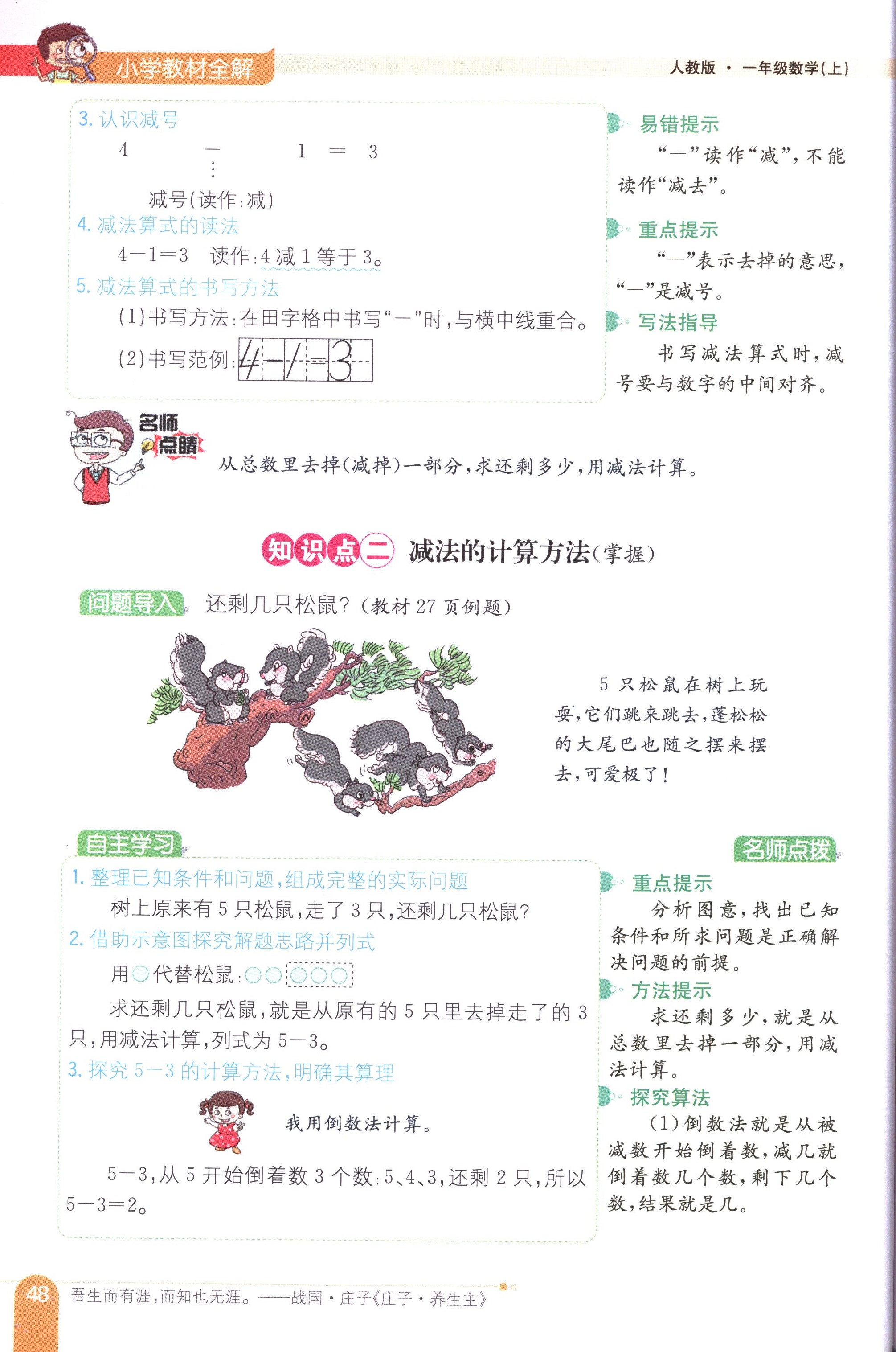 數(shù)學(xué)課本人教版一年級(jí)上 3.6 減法
