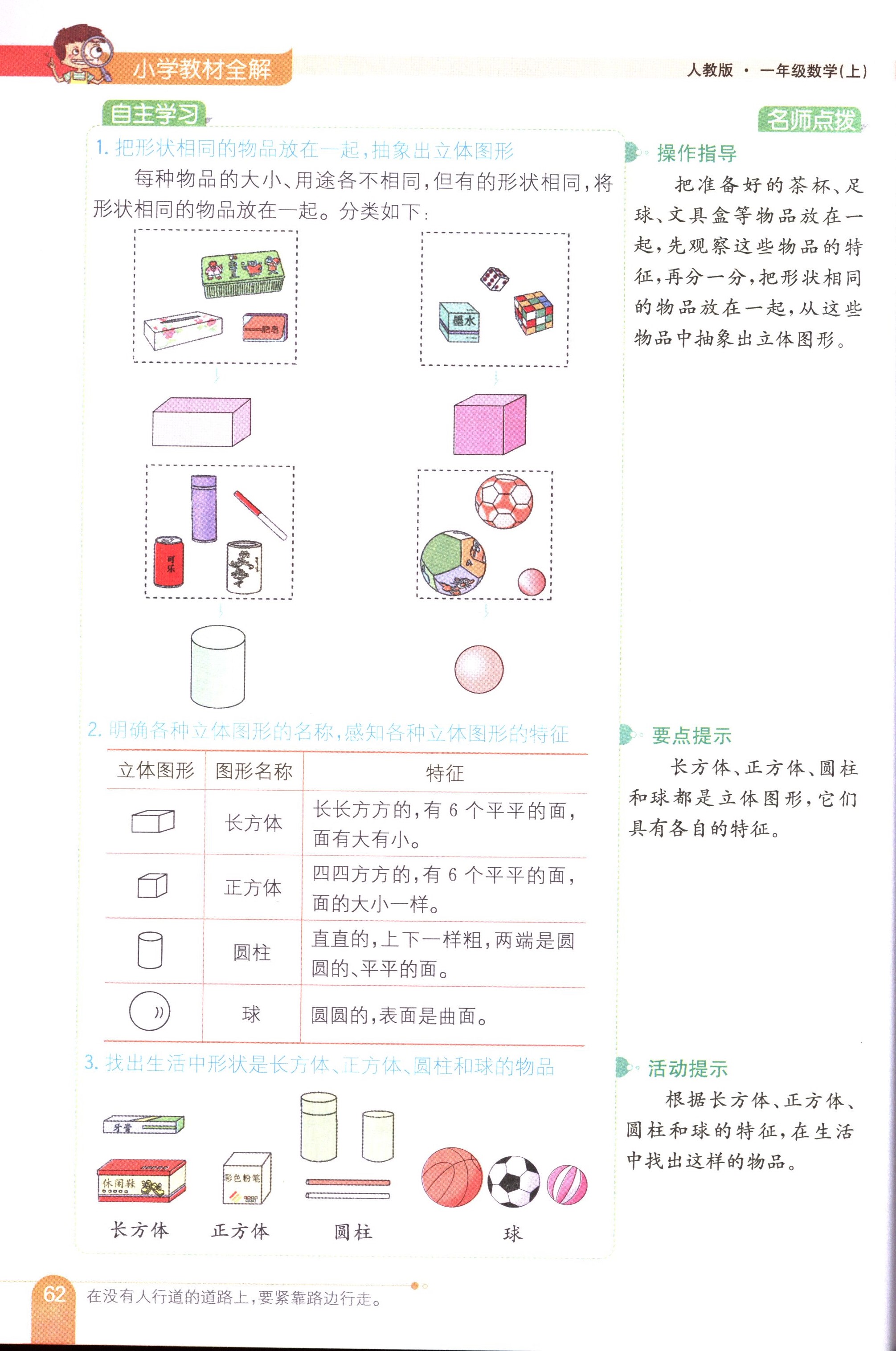 數(shù)學(xué)課本人教版一年級(jí)上 認(rèn)識(shí)圖形(一)