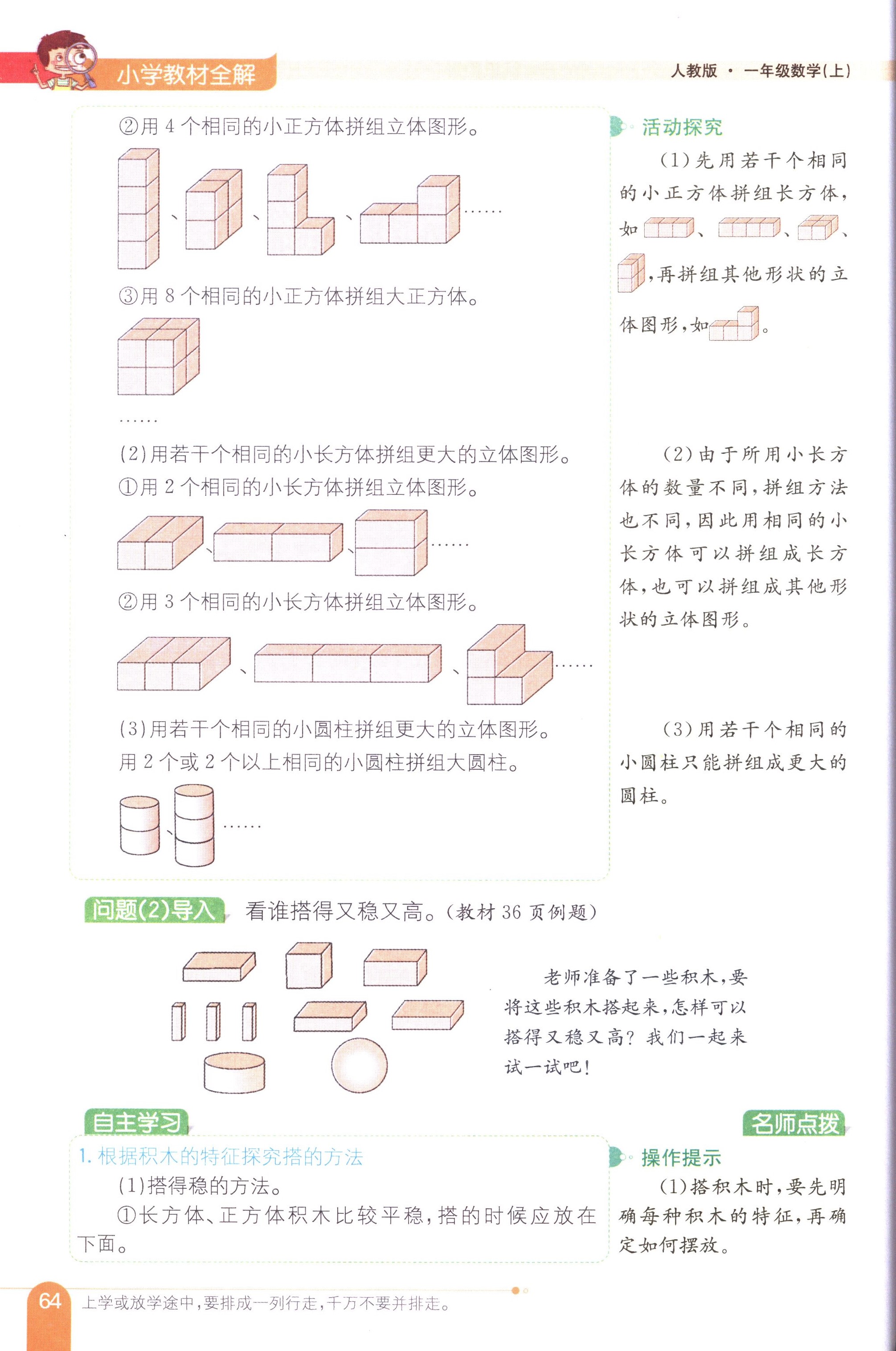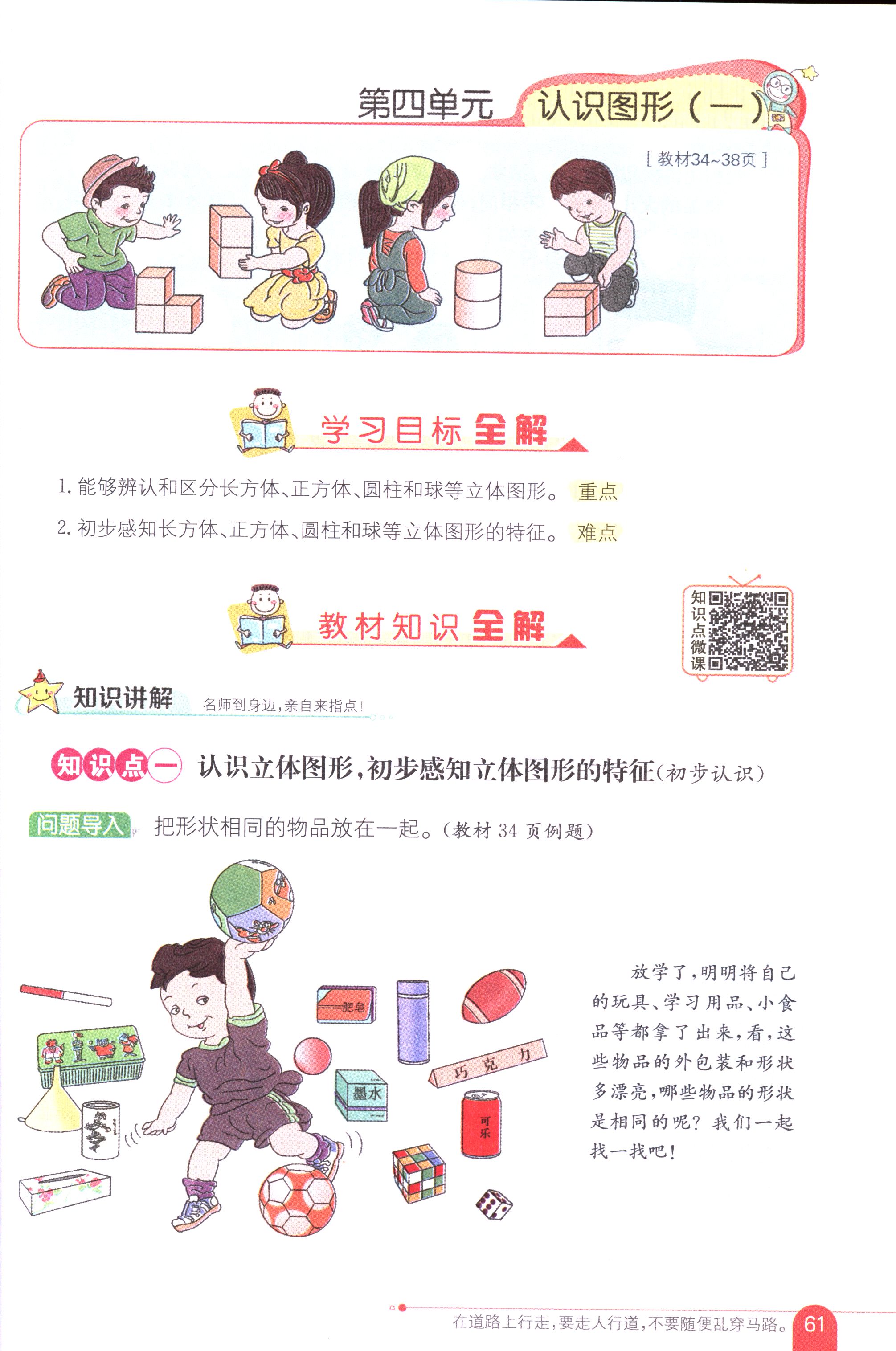 數(shù)學(xué)課本人教版一年級上 認(rèn)識圖形(一)