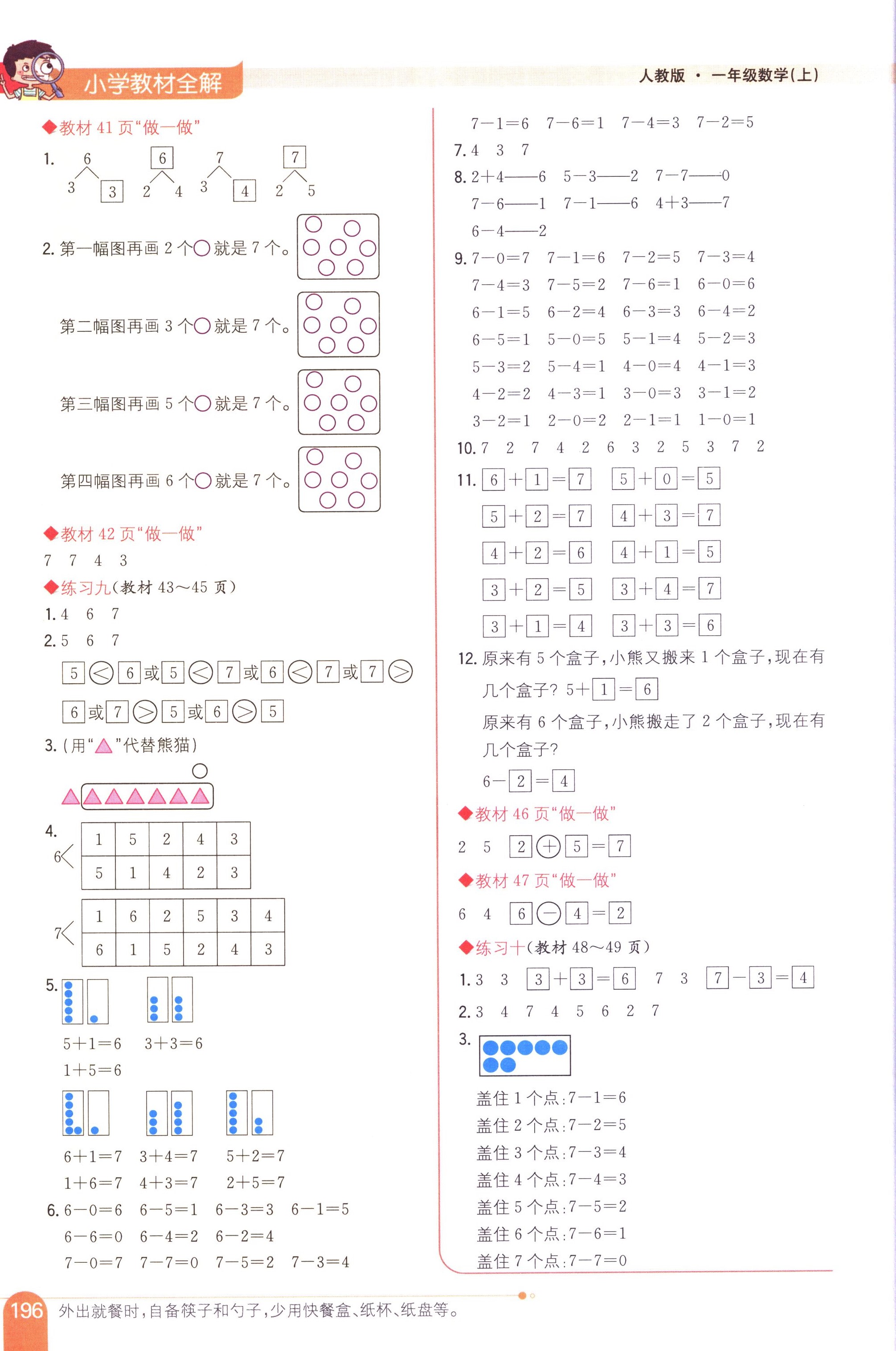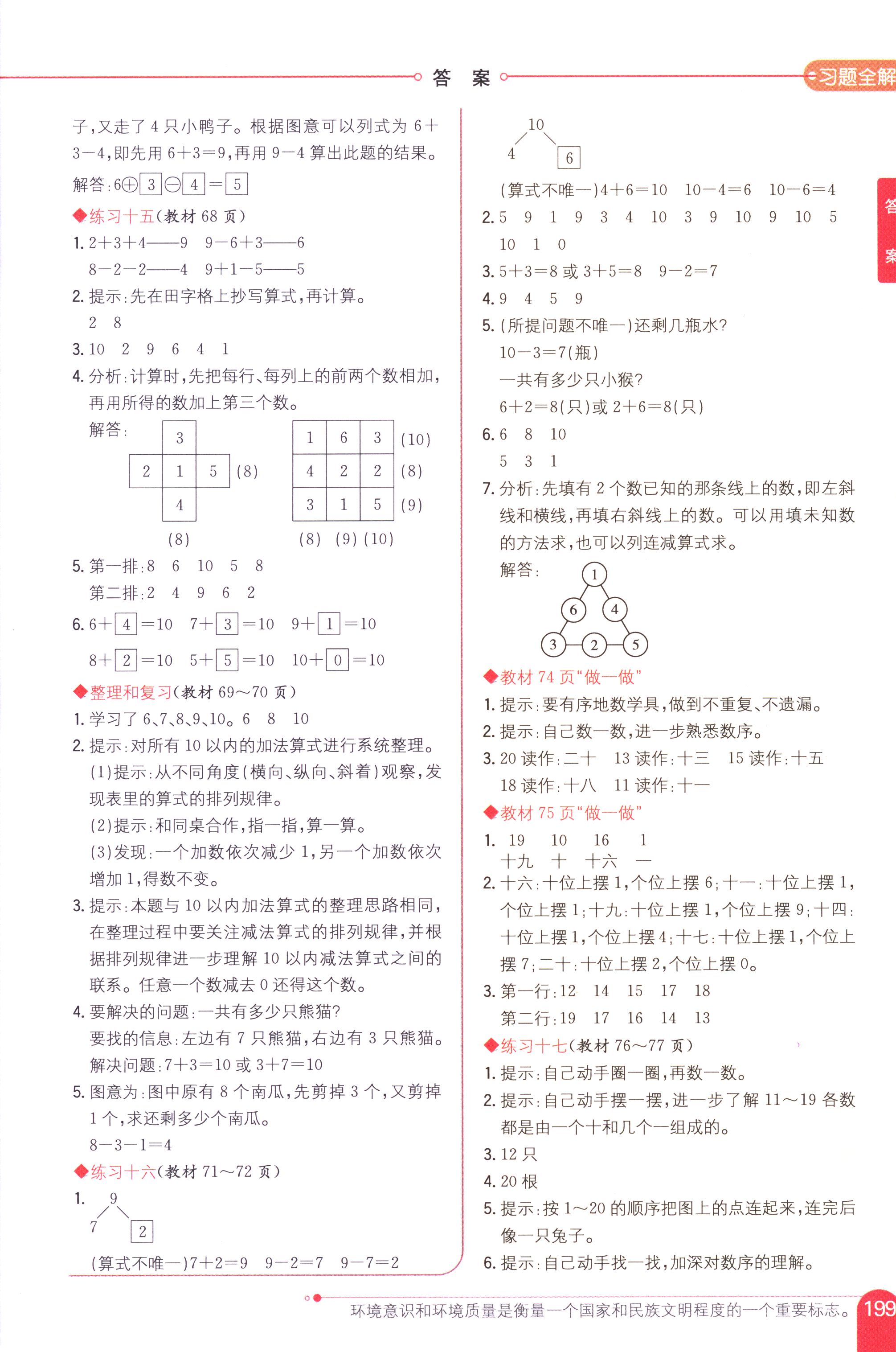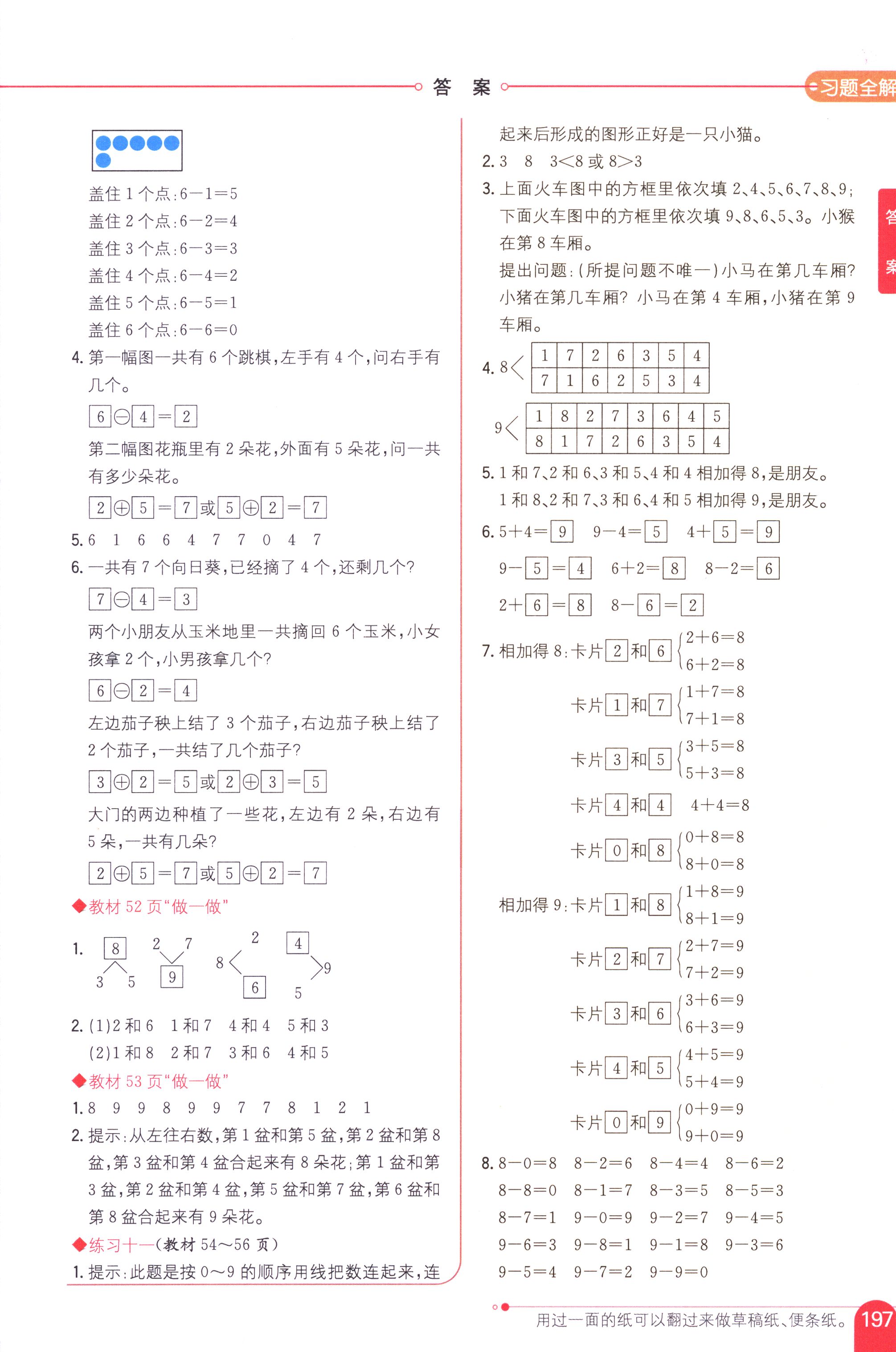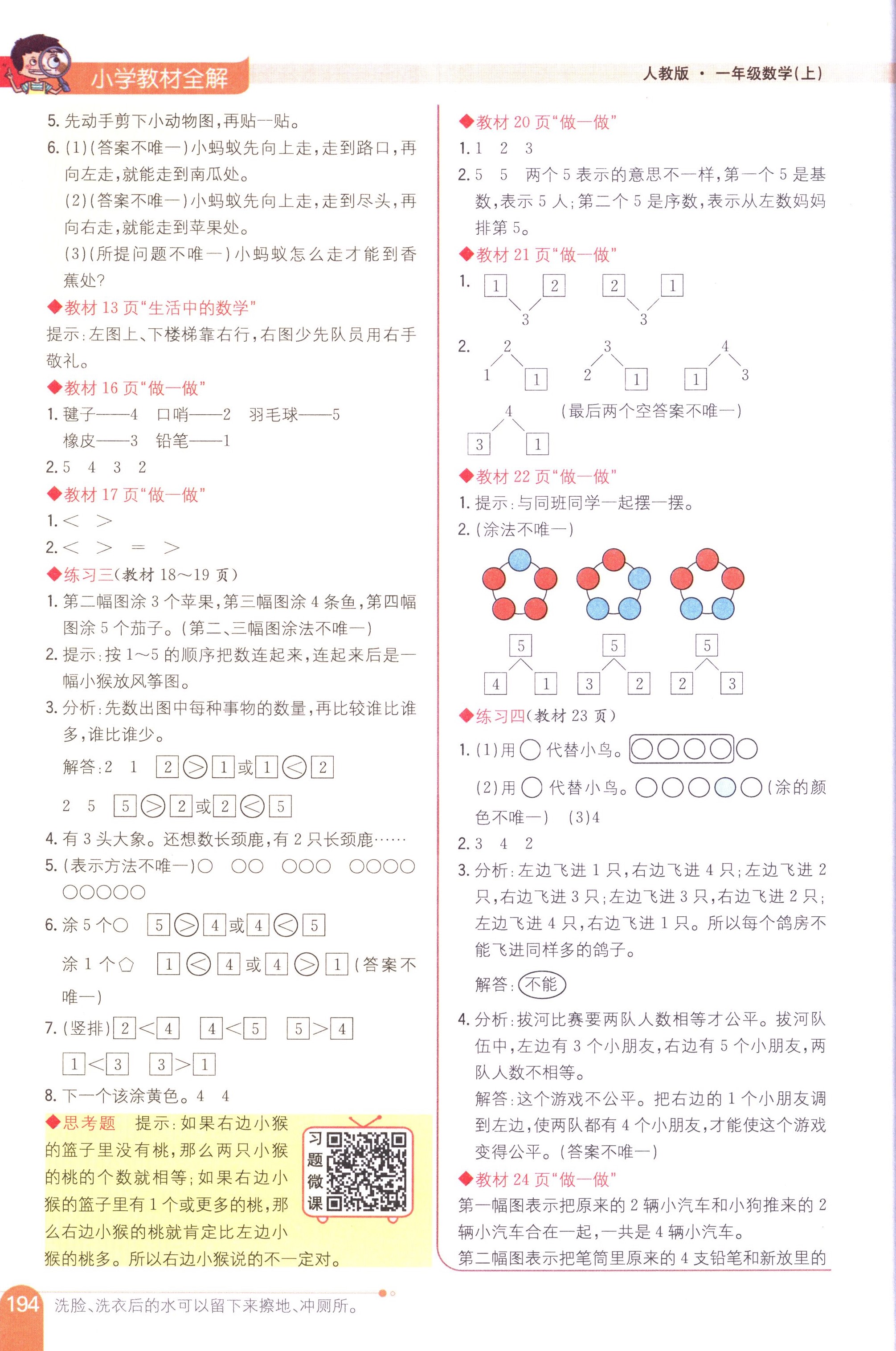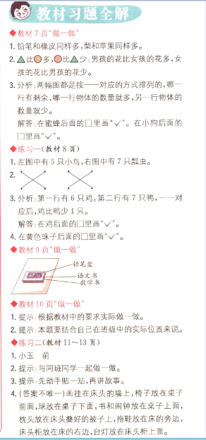 數(shù)學(xué)課本人教版一年級上 教材習(xí)題全解
