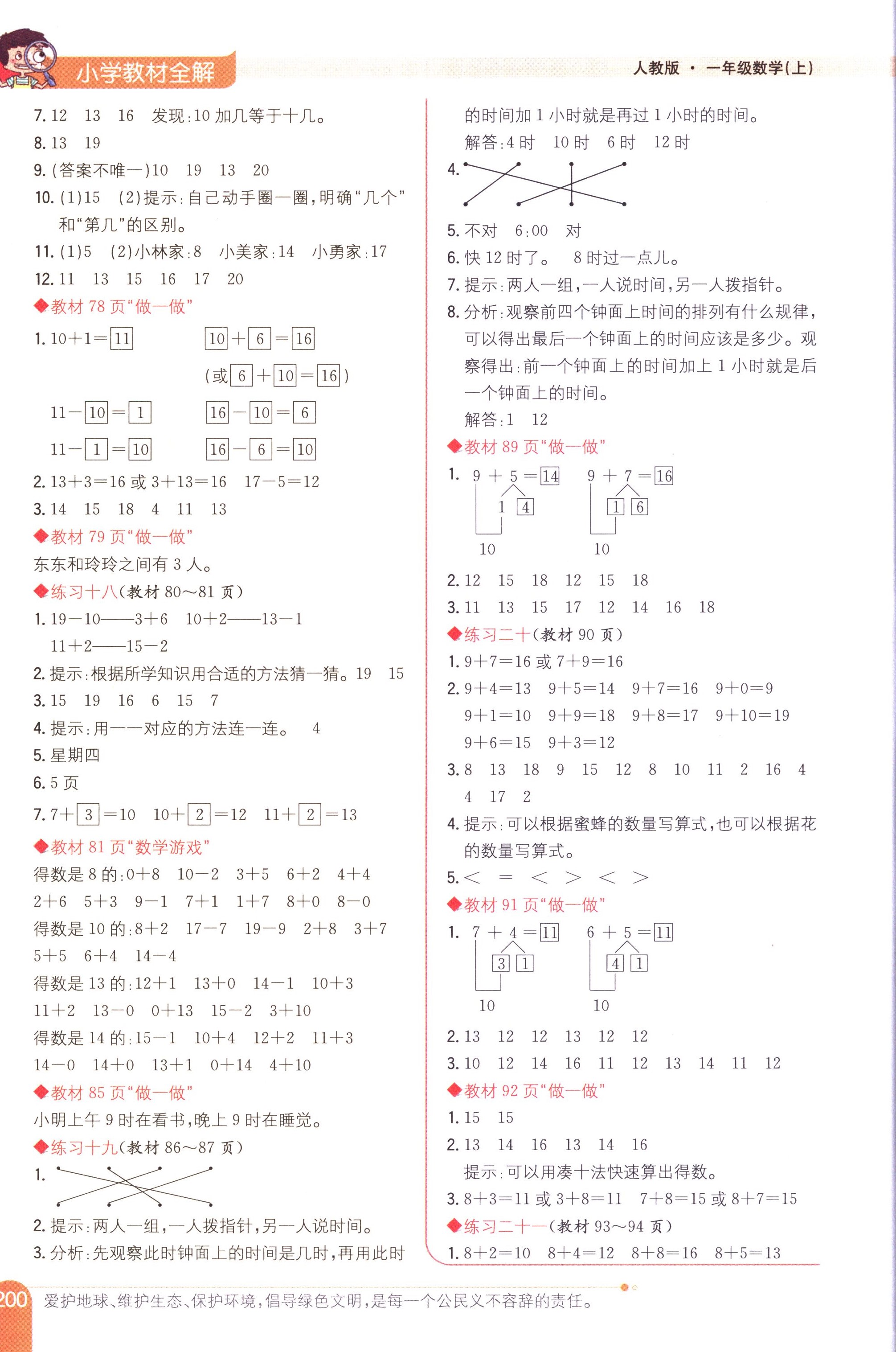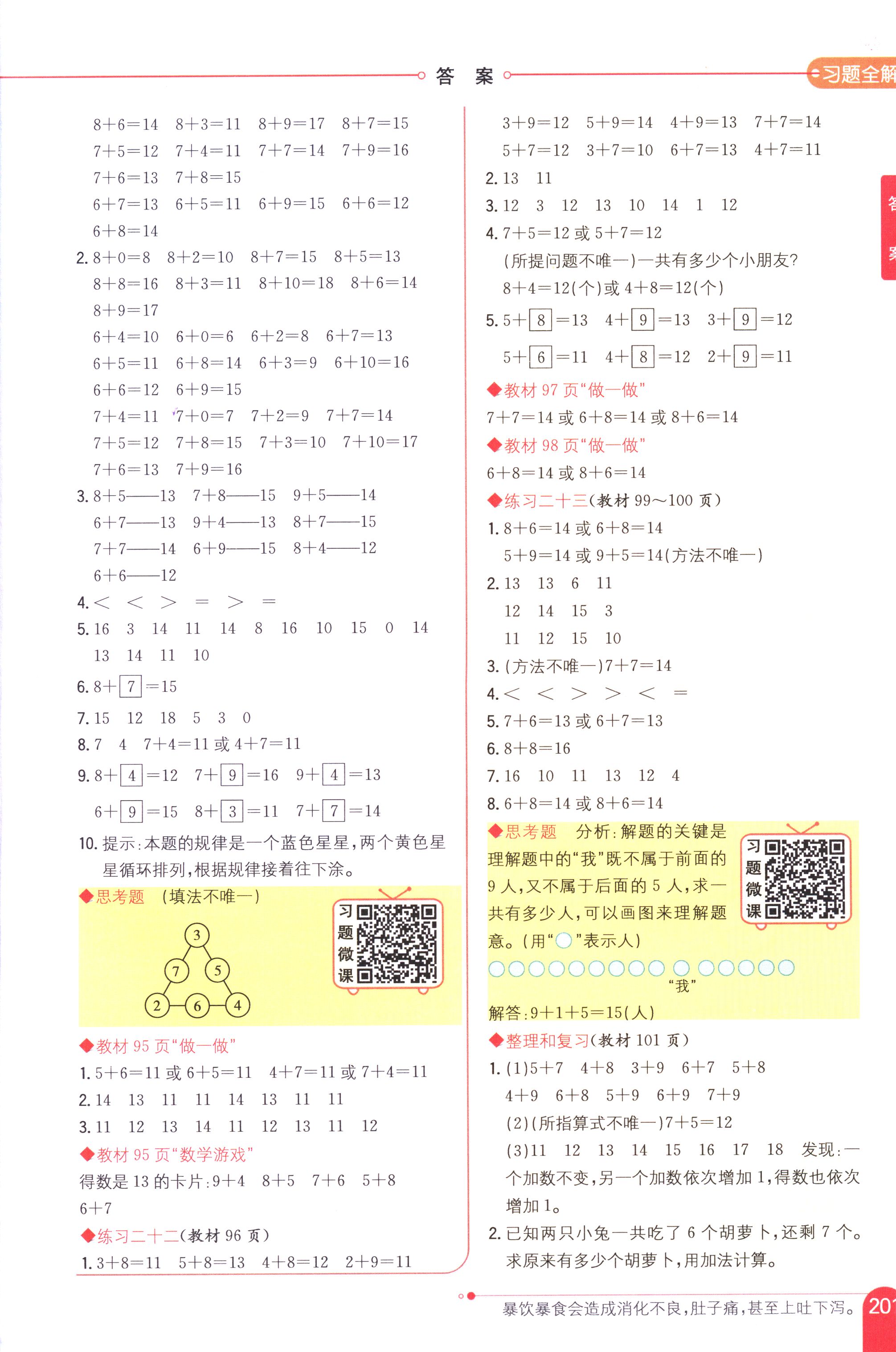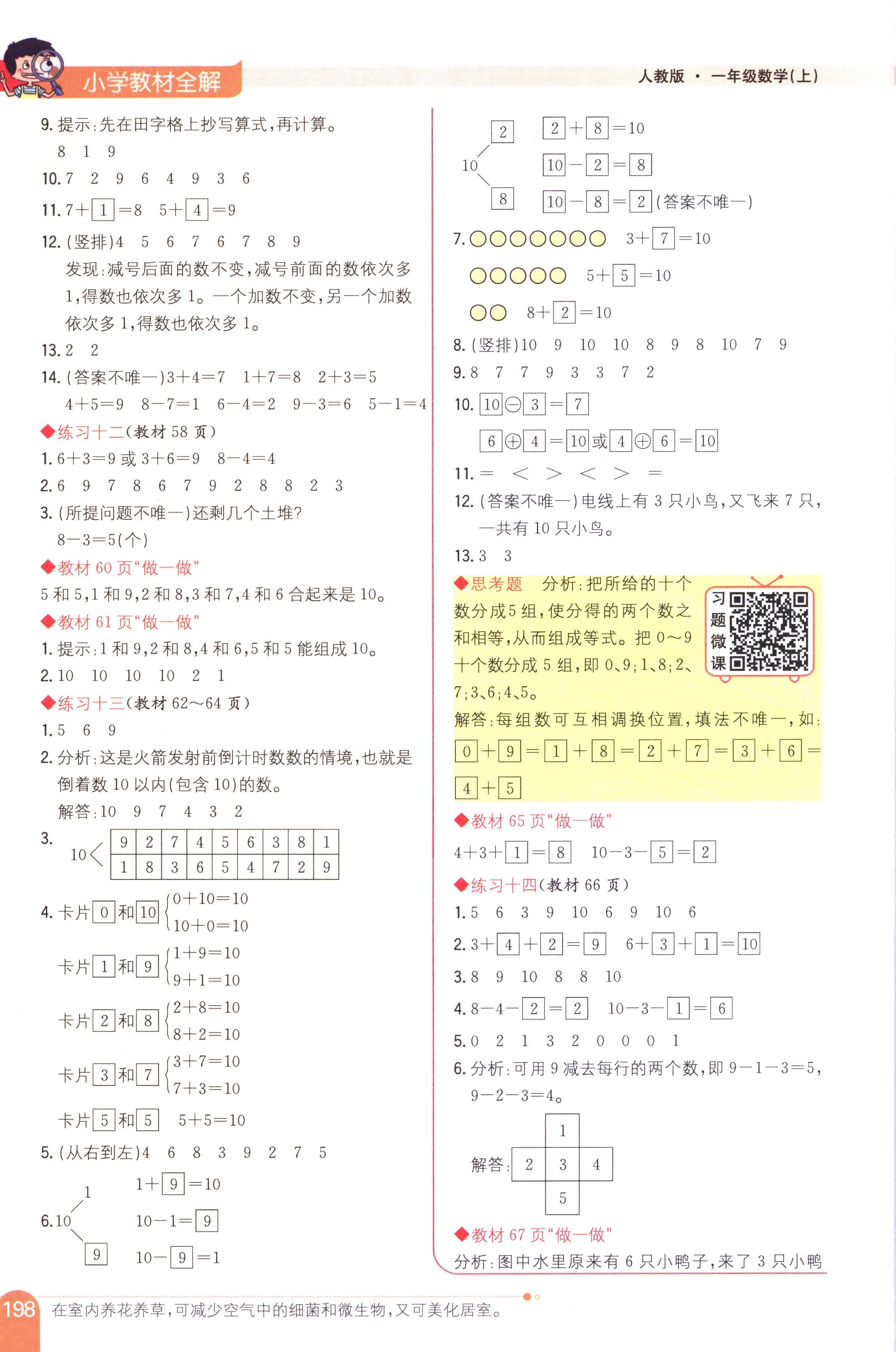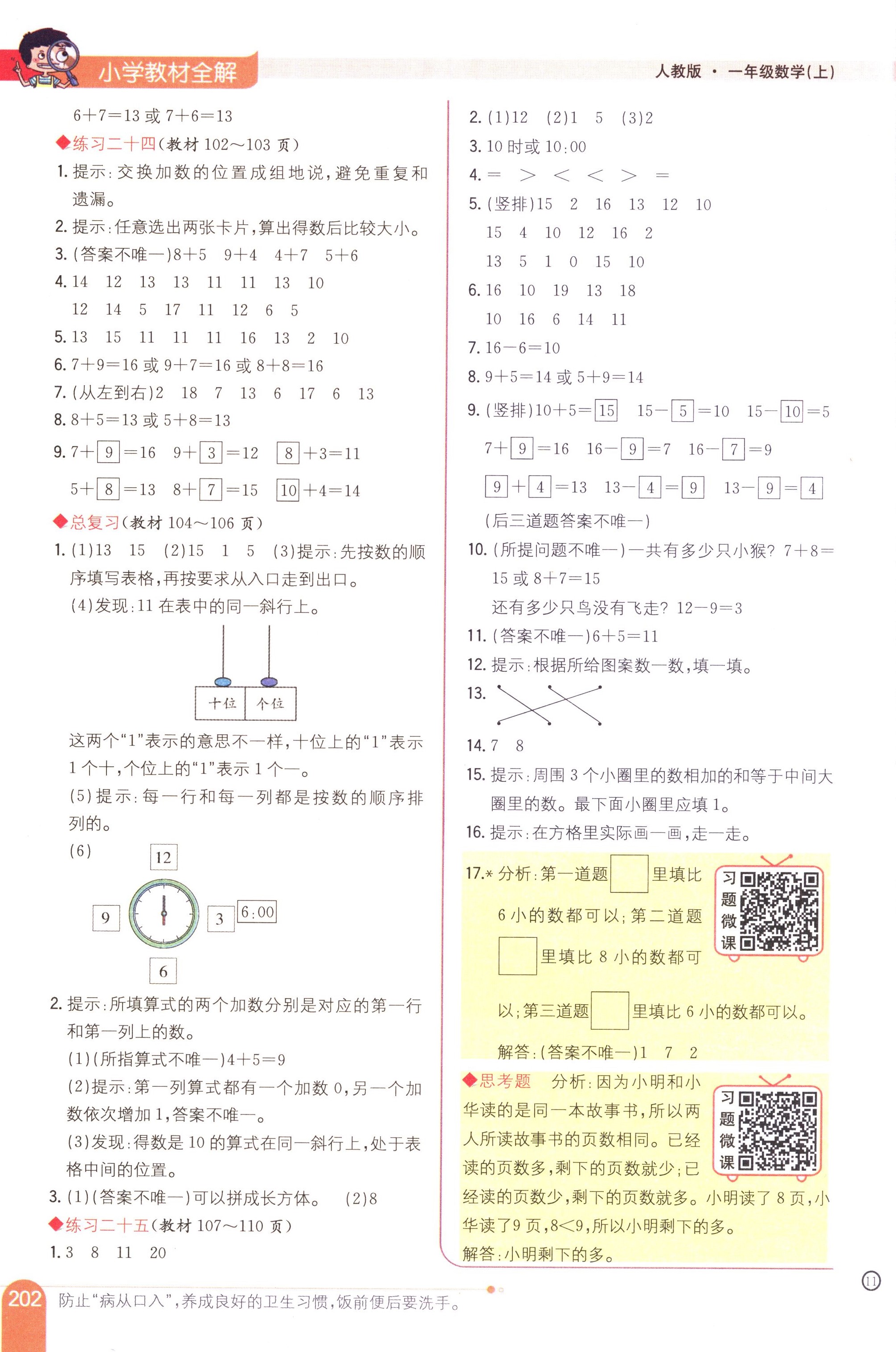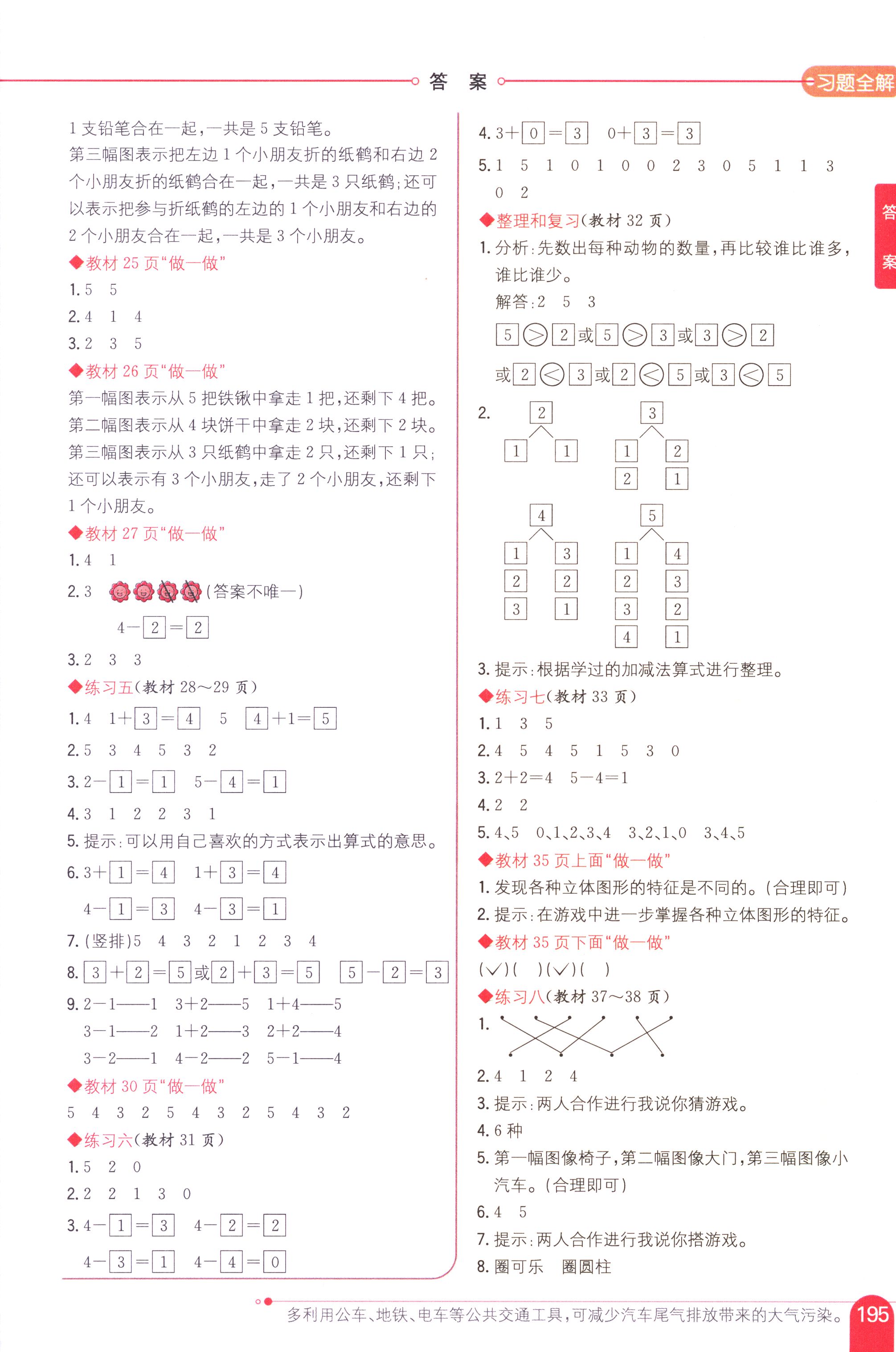 數(shù)學(xué)課本人教版一年級上 教材習(xí)題全解