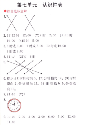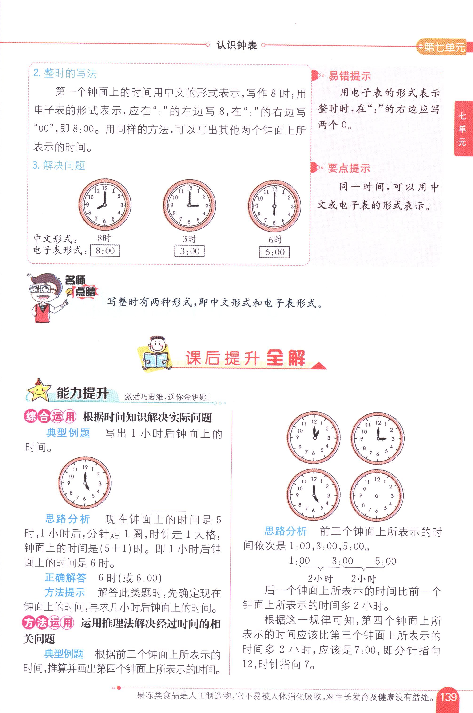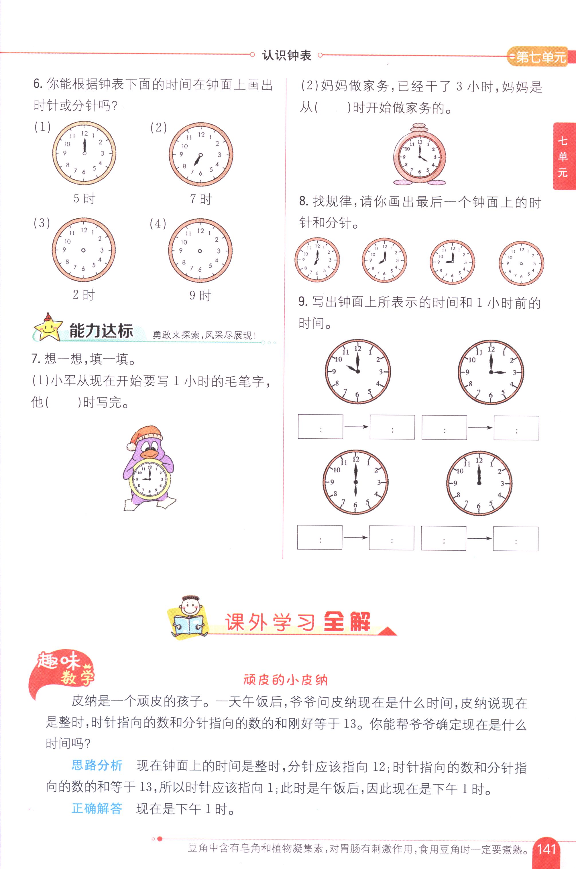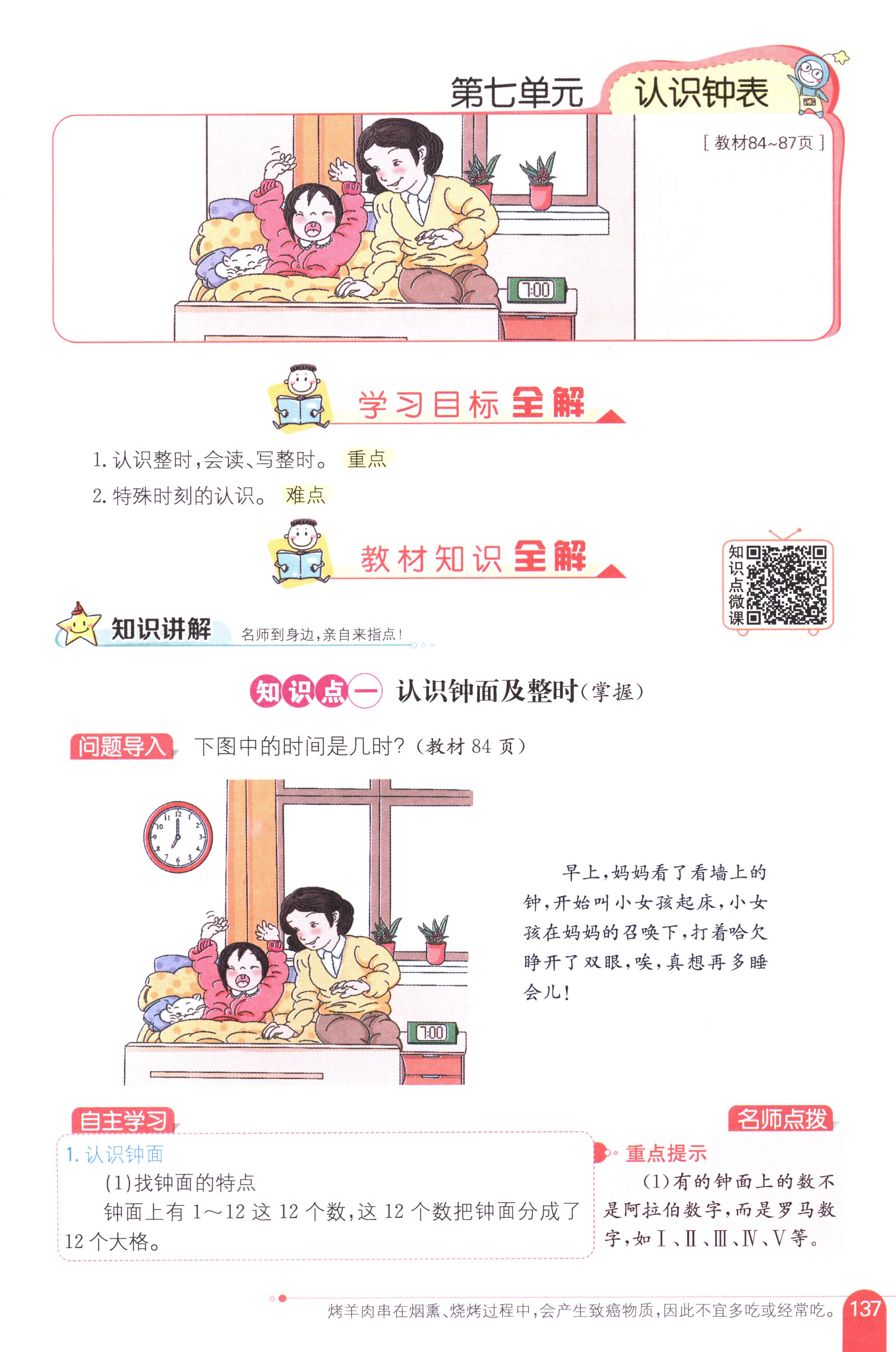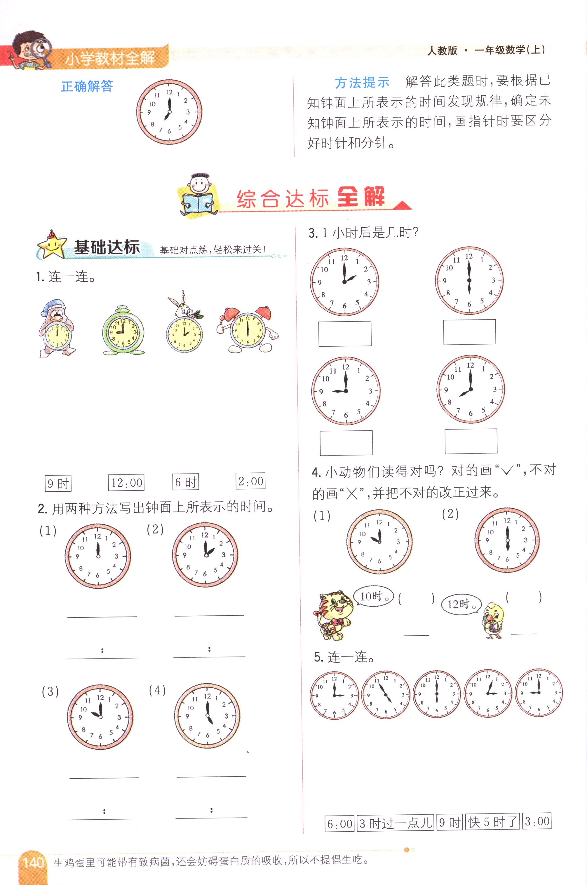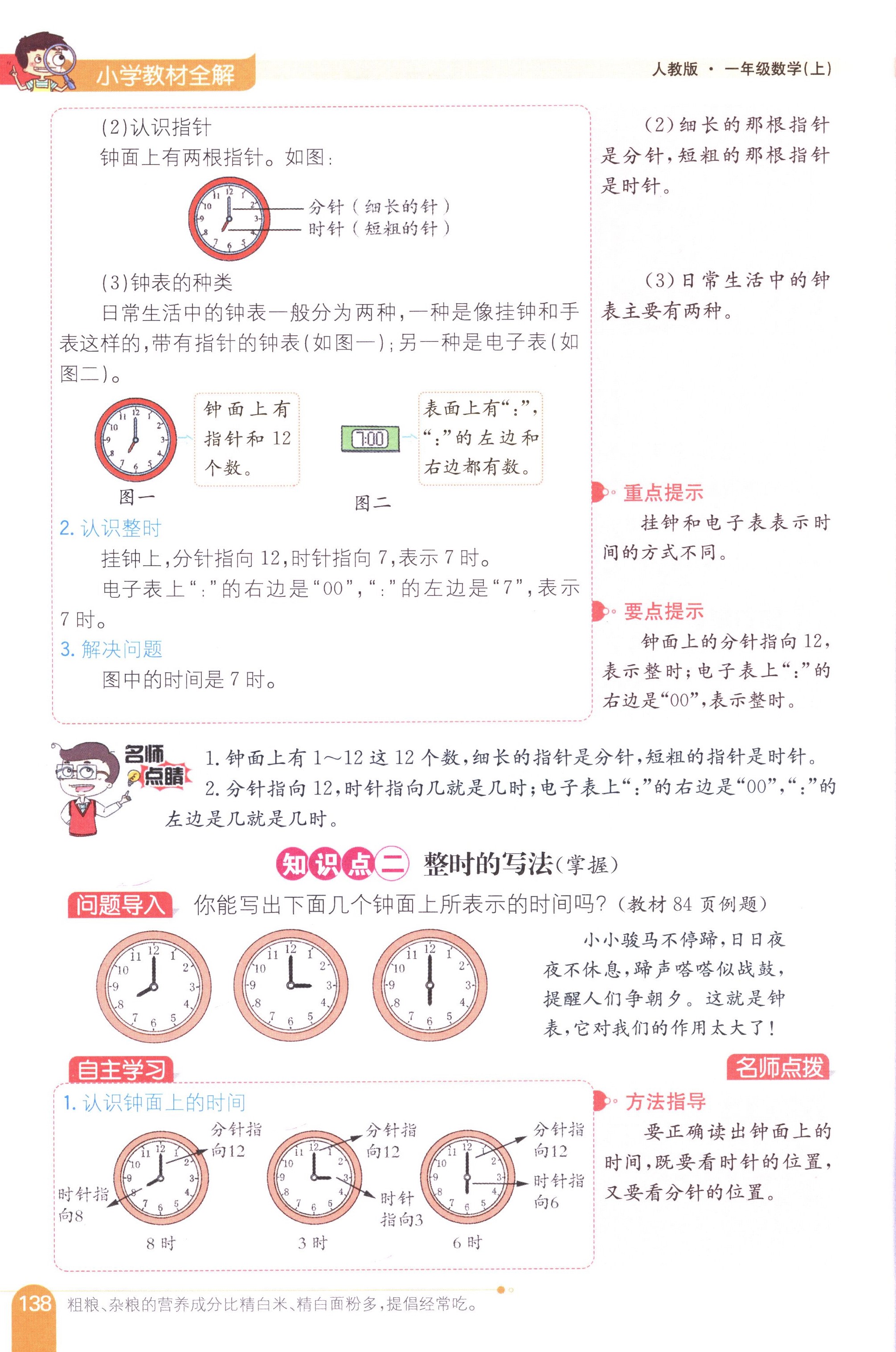數(shù)學(xué)課本人教版一年級(jí)上 認(rèn)識(shí)鐘表