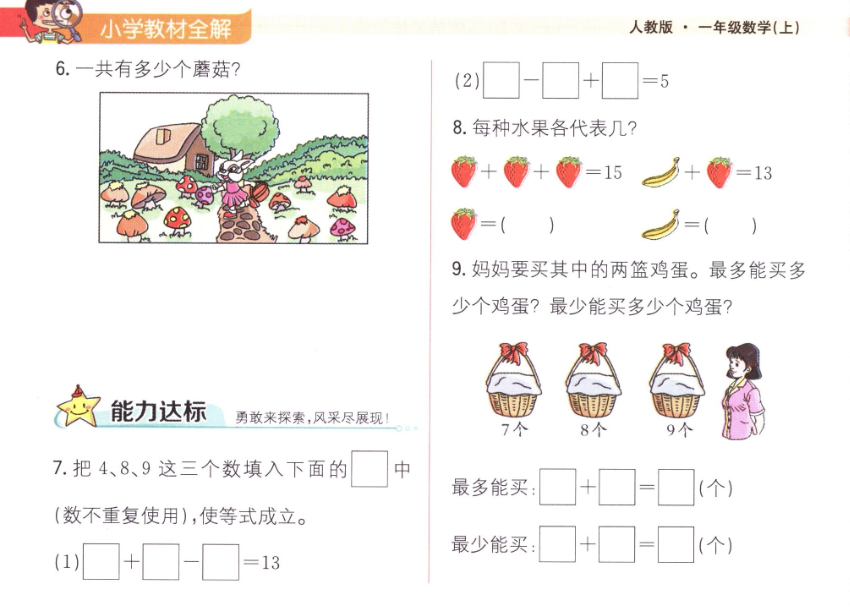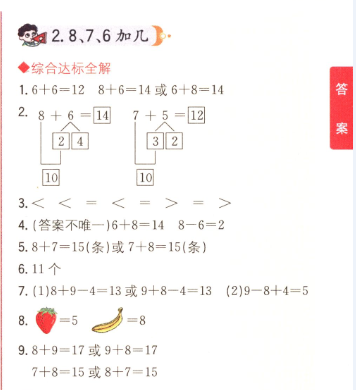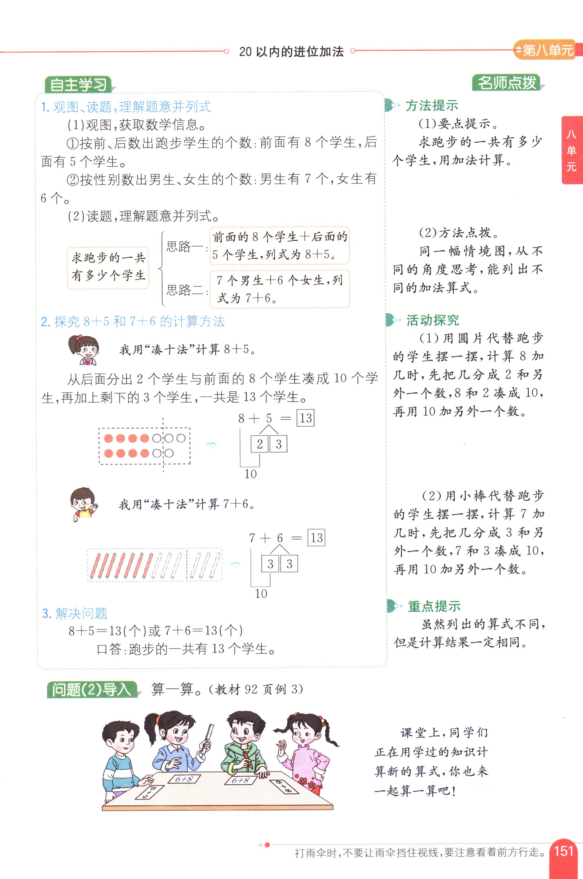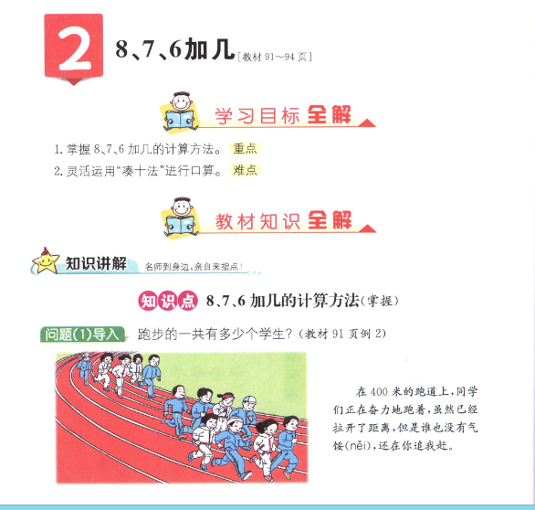 數(shù)學(xué)課本人教版一年級上 8.2 8、7、6加幾