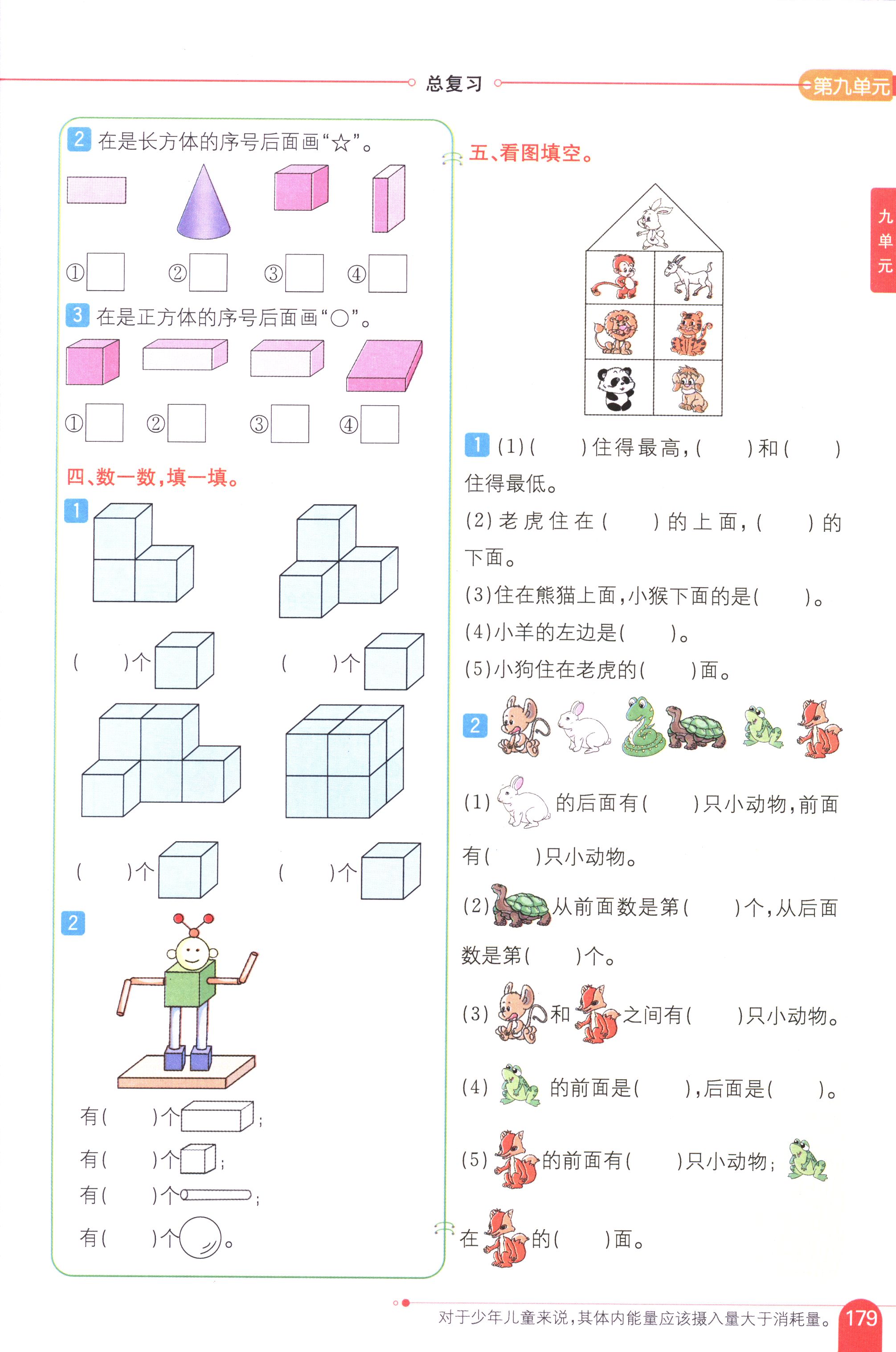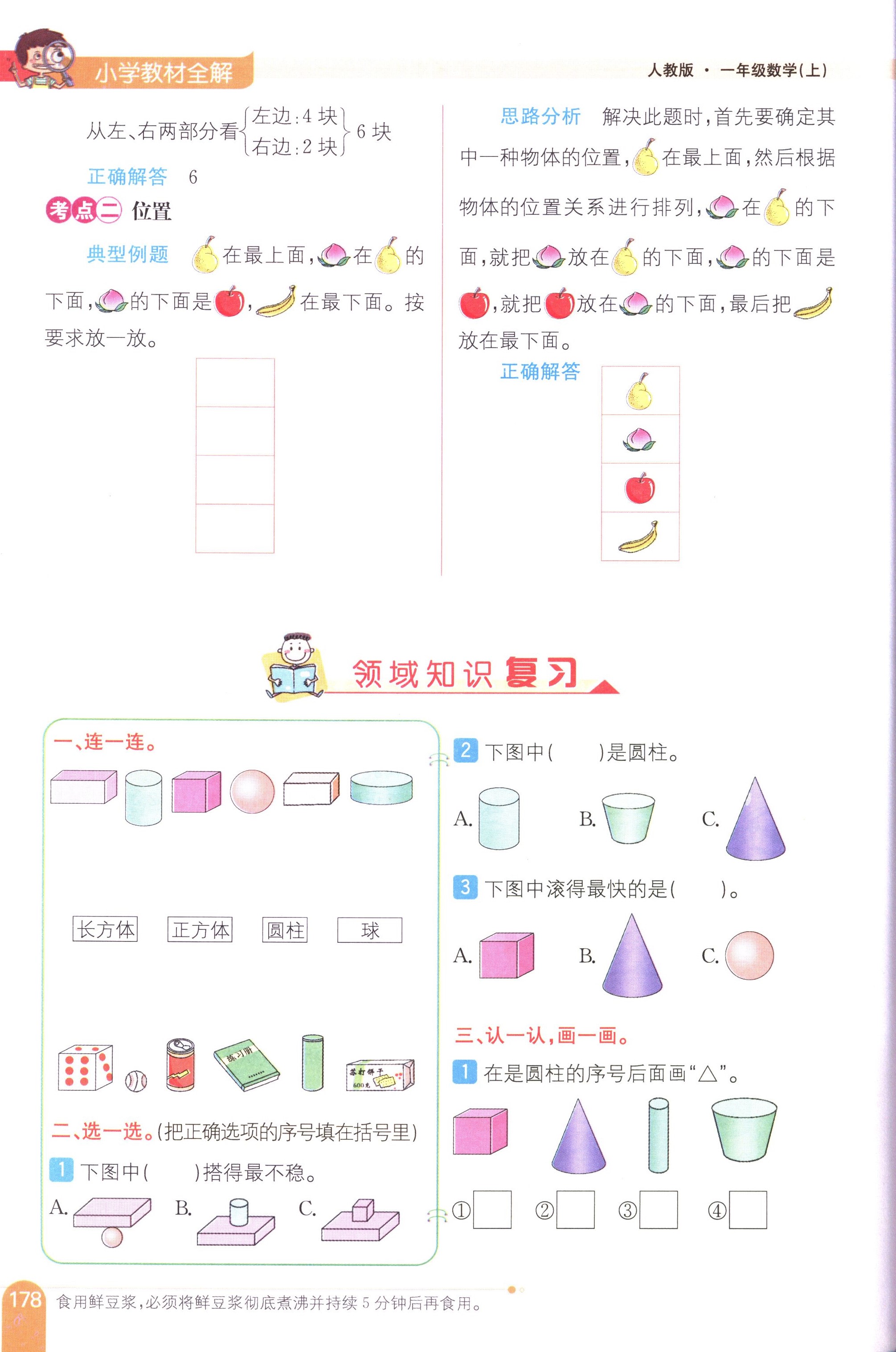 數(shù)學(xué)課本人教版一年級(jí)上 領(lǐng)域二 圖形與幾何